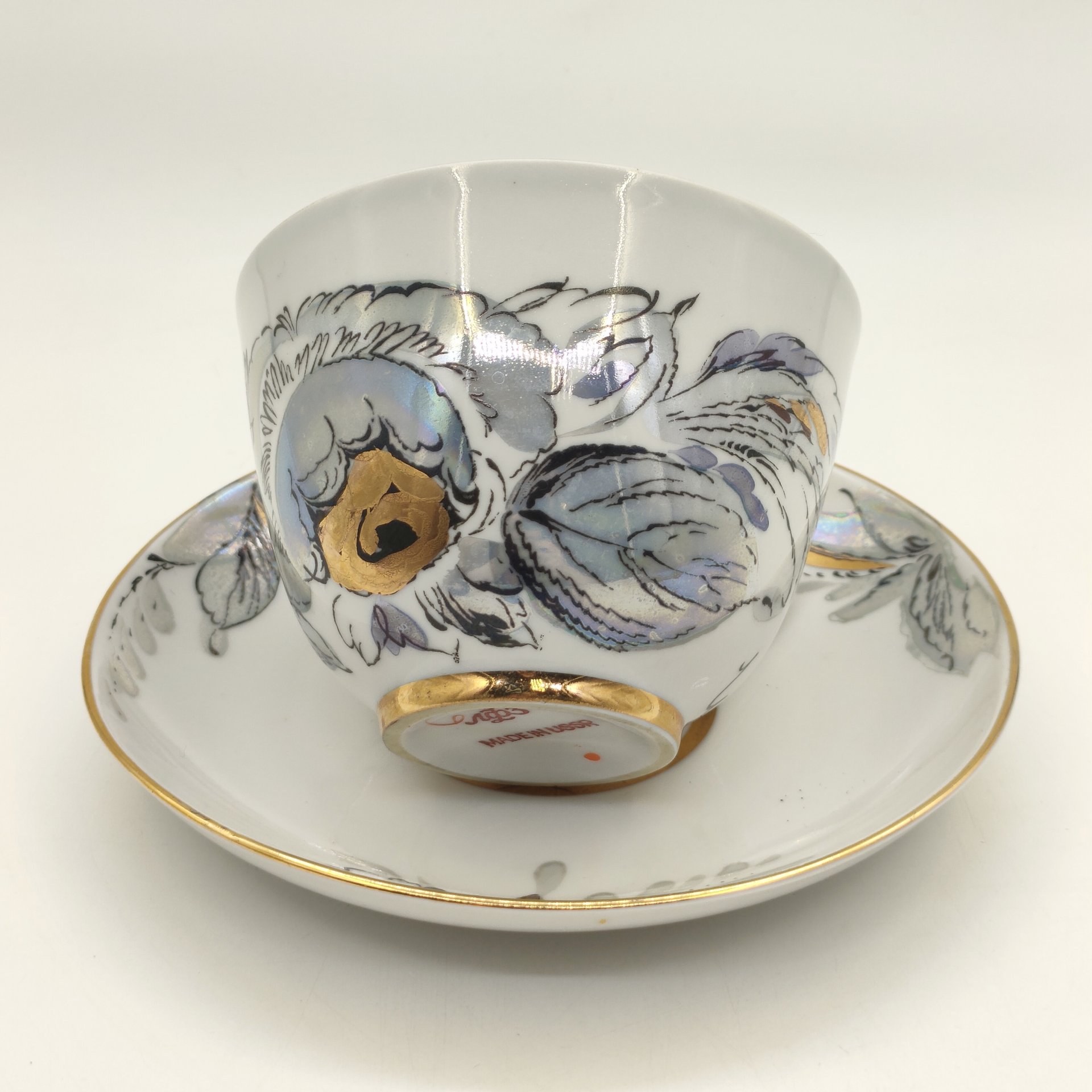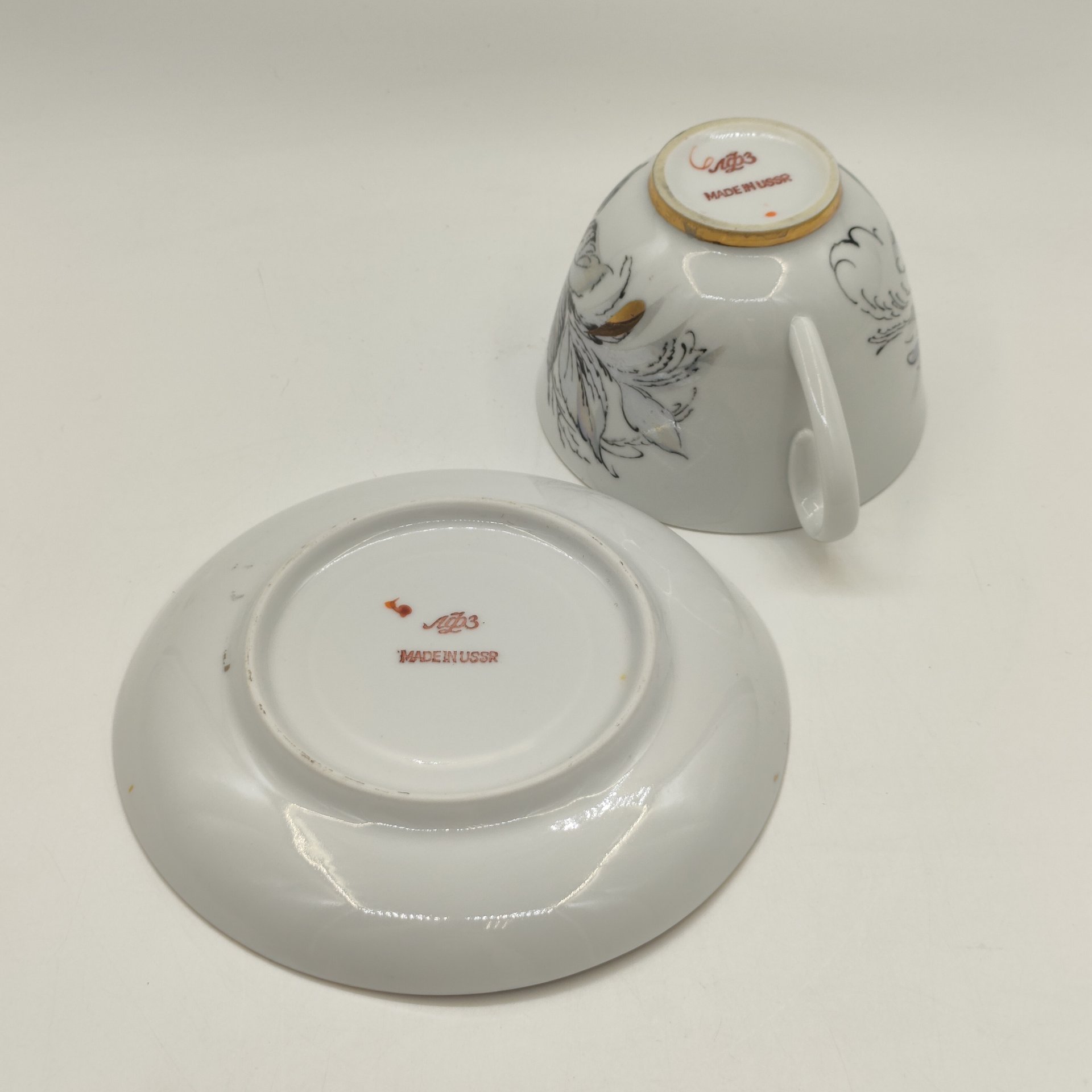 Чайная пара с цветочным декором, фарфор, роспись, золочение, Полонский фарфоровый завод, СССР, 1980-1991 гг.