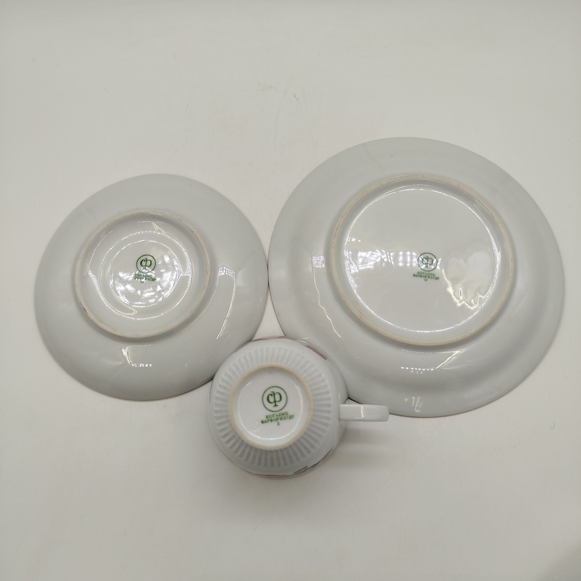 Трио чайное с цветочным декором пурпурного оттенка, фарфор, роспись, золочение, Weimar Porzellan (Веймарский фарфор), ГДР, 1949-1980 гг.