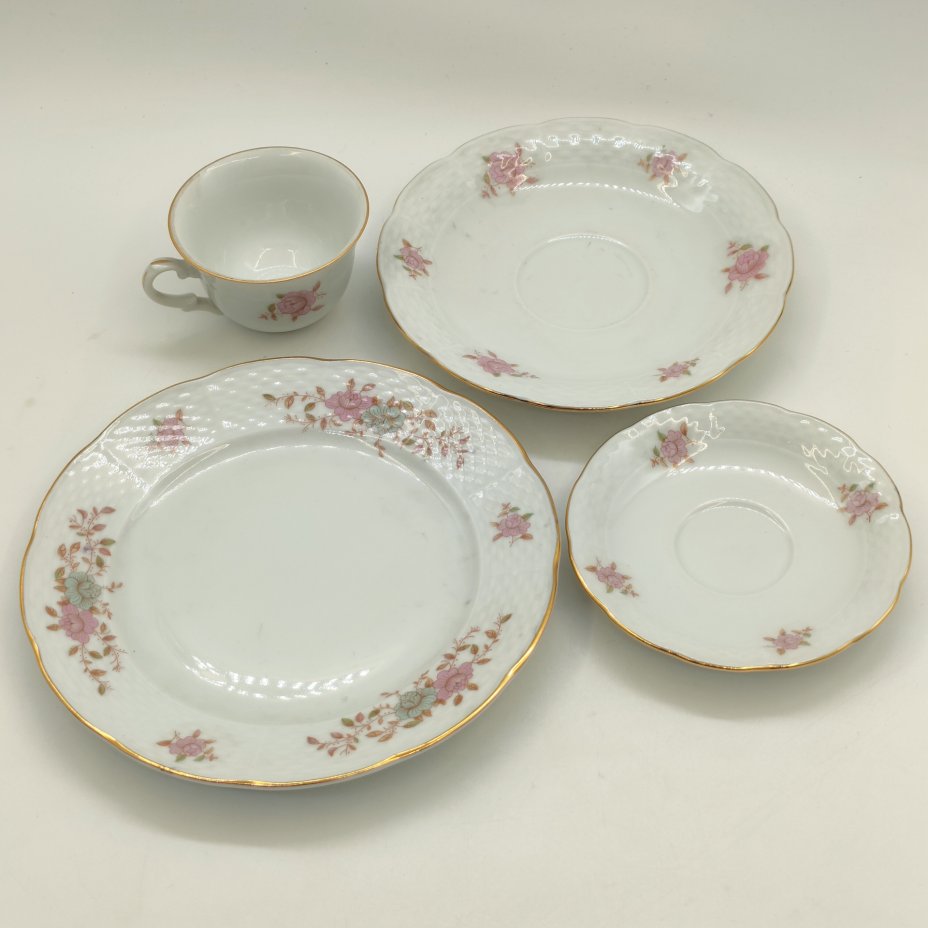 Чайная пара с цветочным декором, фарфор, роспись, золочение, Полонский фарфоровый завод, СССР, 1980-1991 гг.