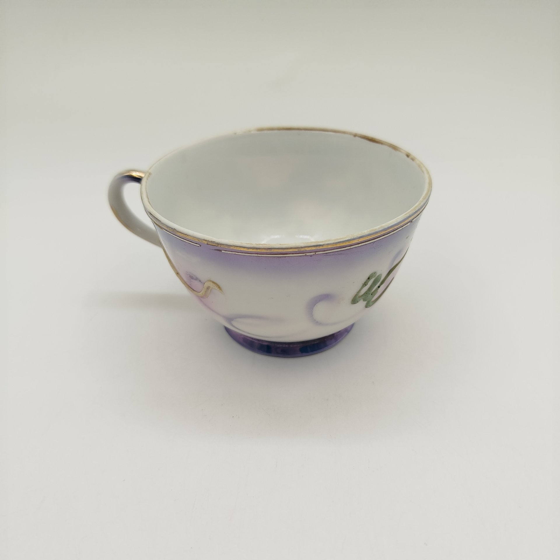 Трио чайное с цветочным декором пурпурного оттенка, фарфор, роспись, золочение, Weimar Porzellan (Веймарский фарфор), ГДР, 1949-1980 гг.
