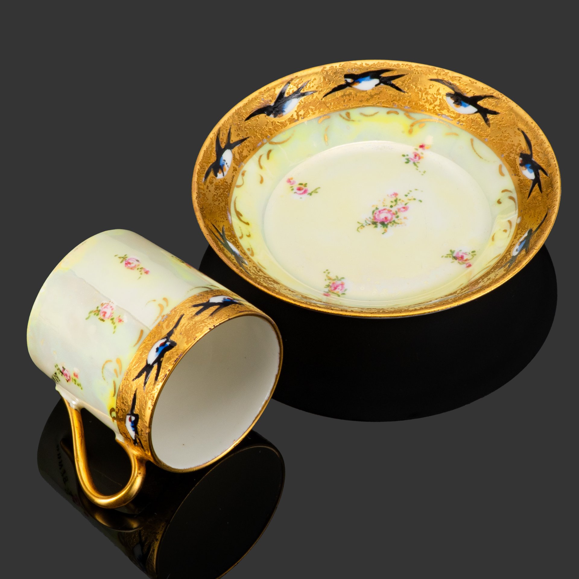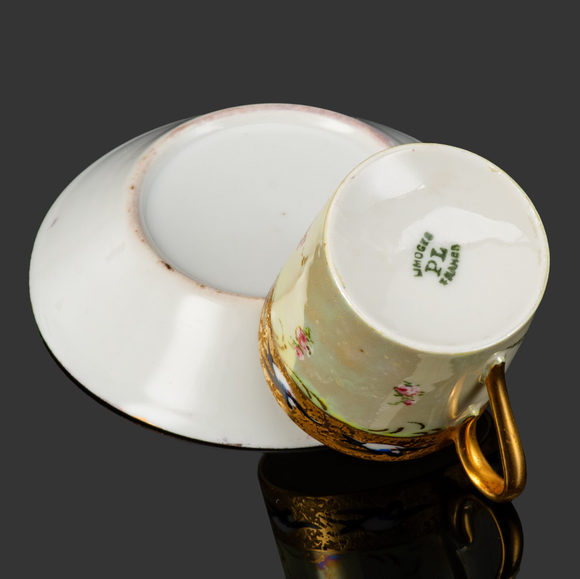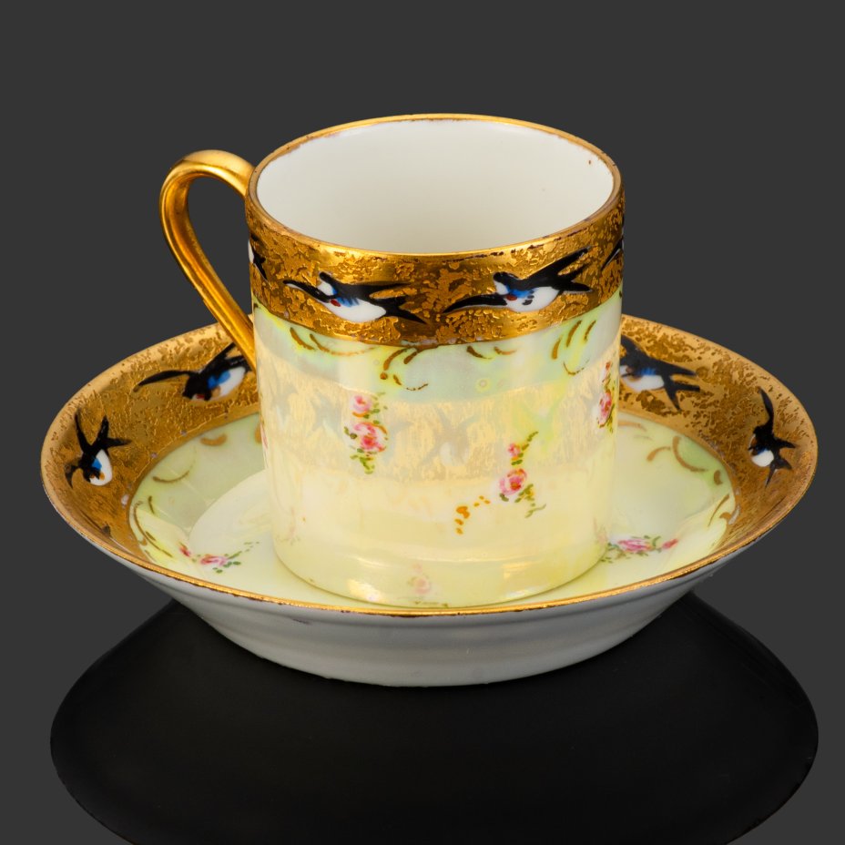 Кофейная пара "Цветы", фаянс, деколь, глазурь, золочение, Западная Европа, 1870-1900 гг.