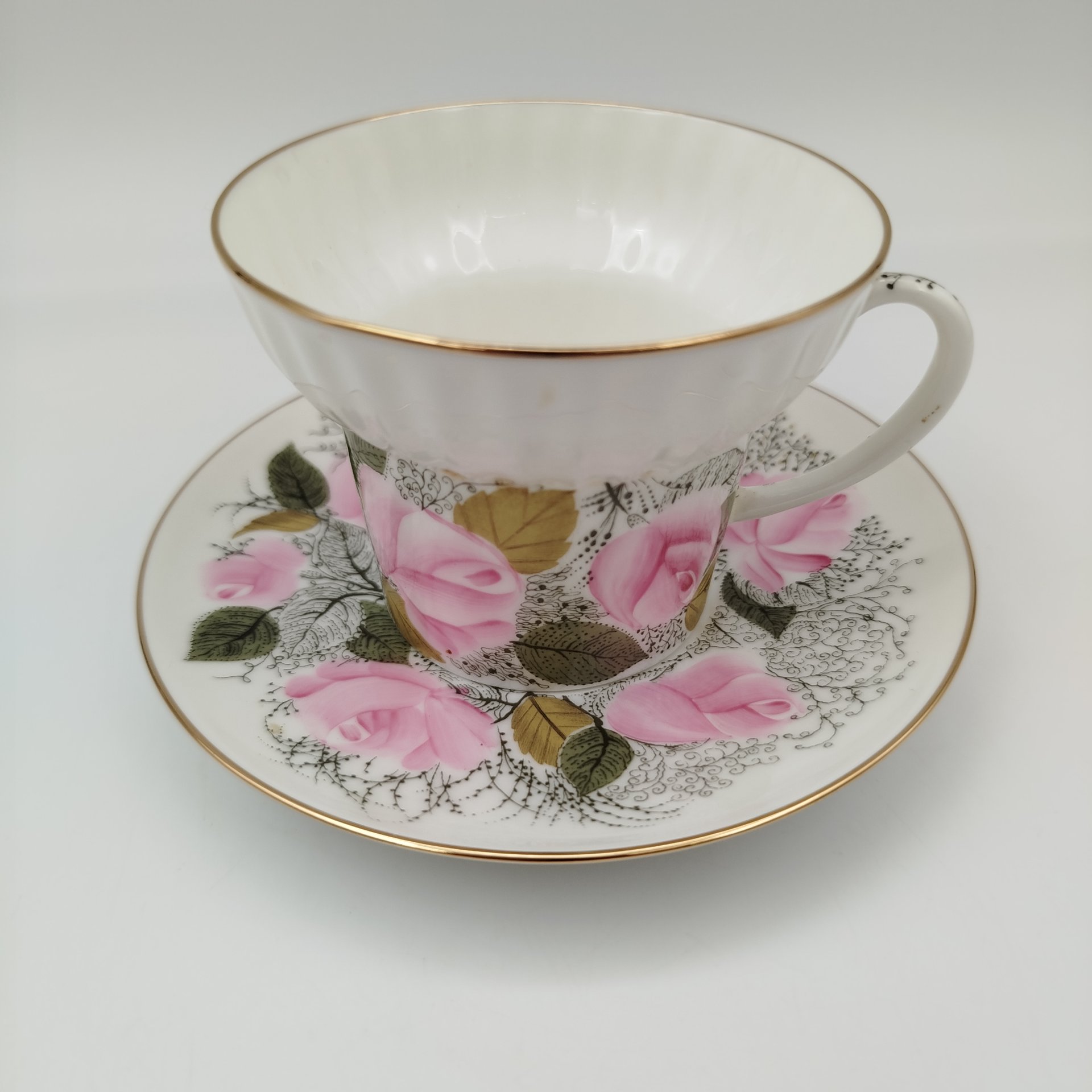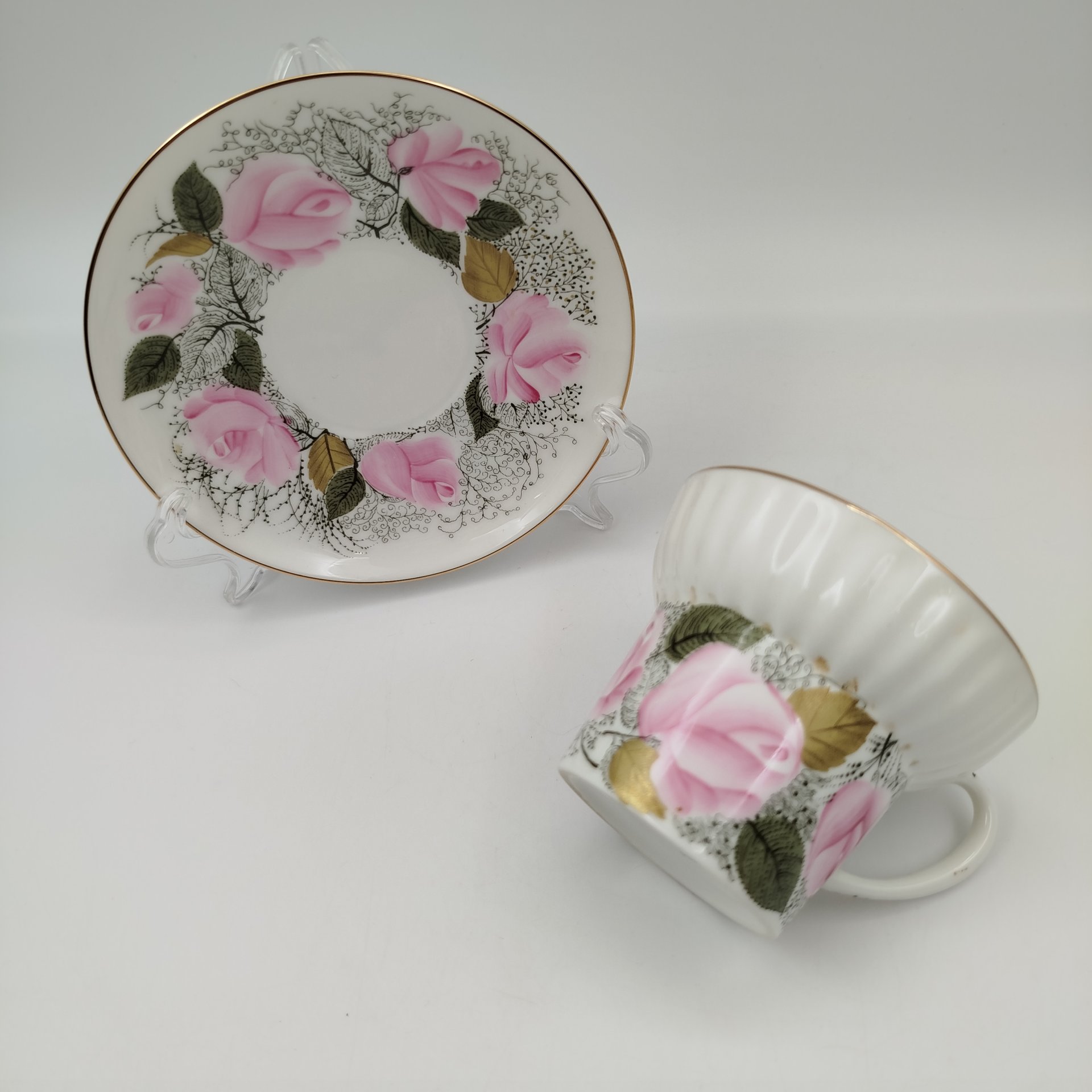 Чашка с тарелкой, украшенные цветочным декором, фарфор, деколь, Западная Европа, 1930-1950 гг.