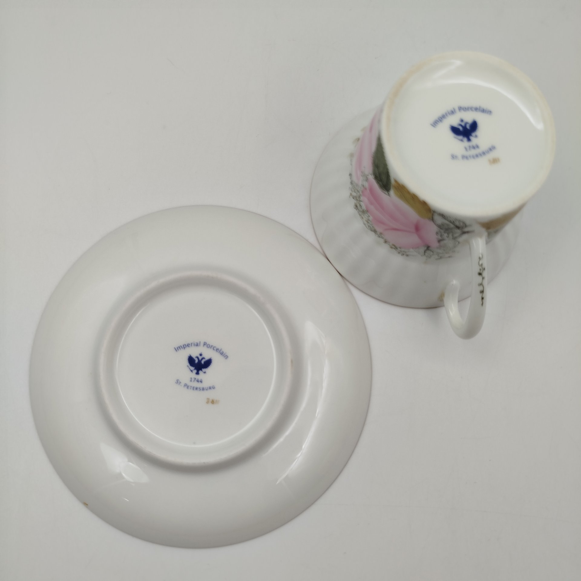 Пара чайная с цветочным декором, фарфор, роспись, золочение, Западная Европа, 1880-1910 гг.
