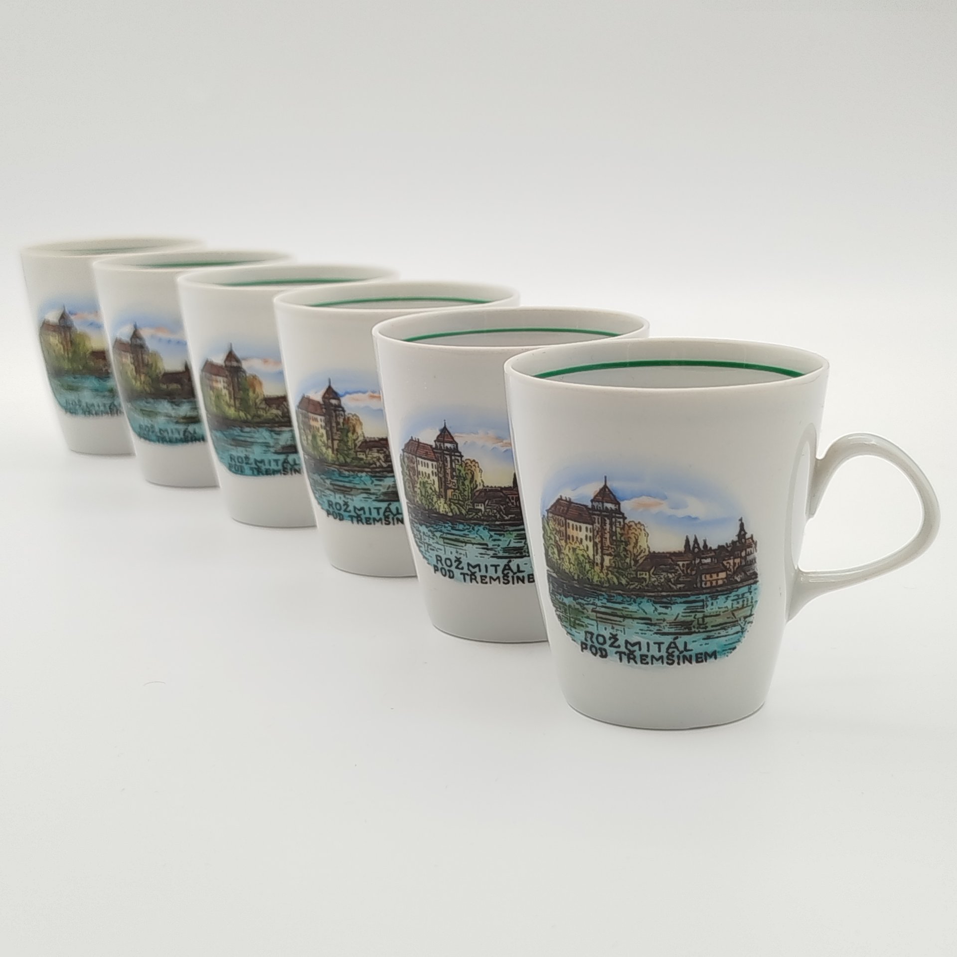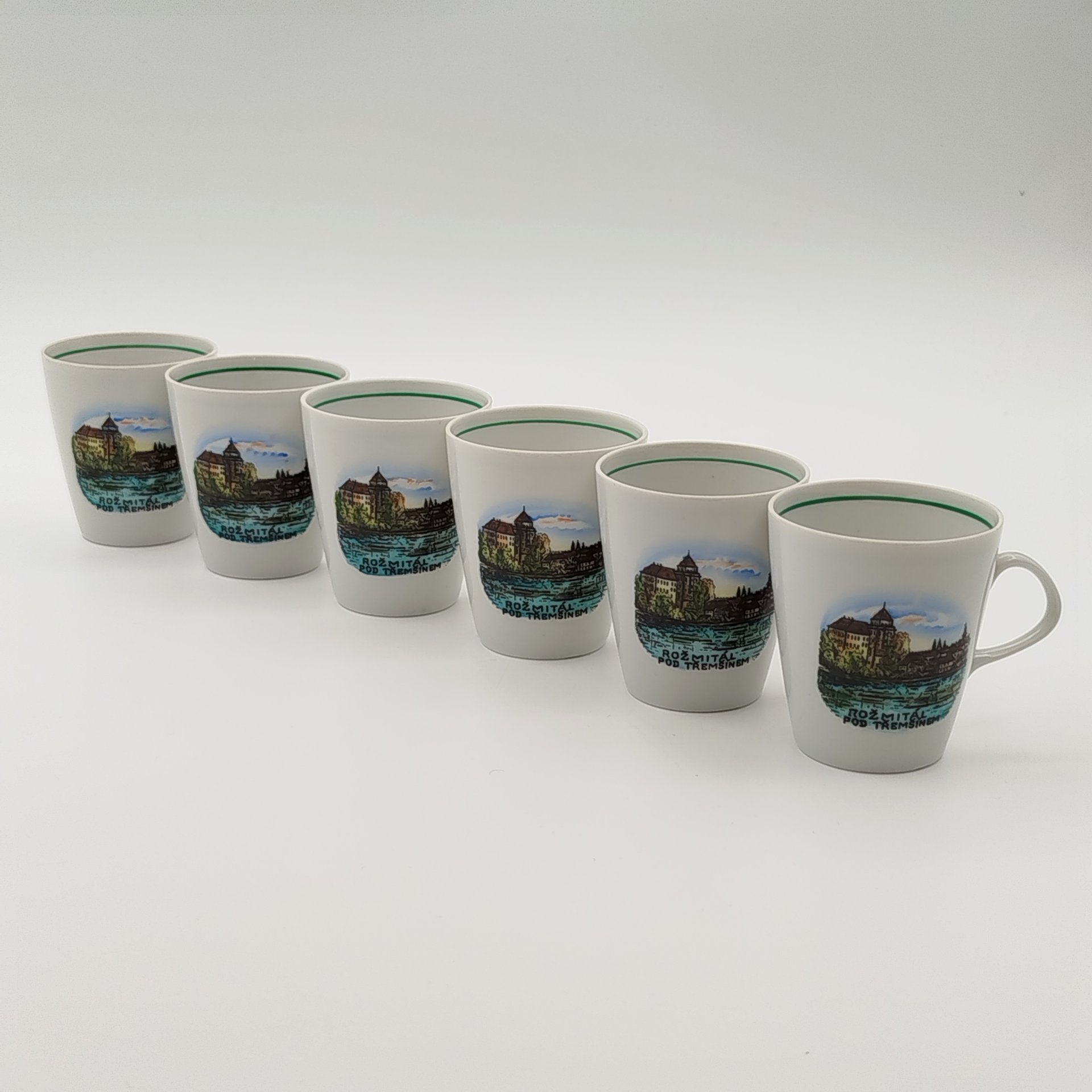 Набор из 6-ти кофейных пар с декором в виде сердец, керамика, деколь, KIL, Югославия, 1980-1990 гг.