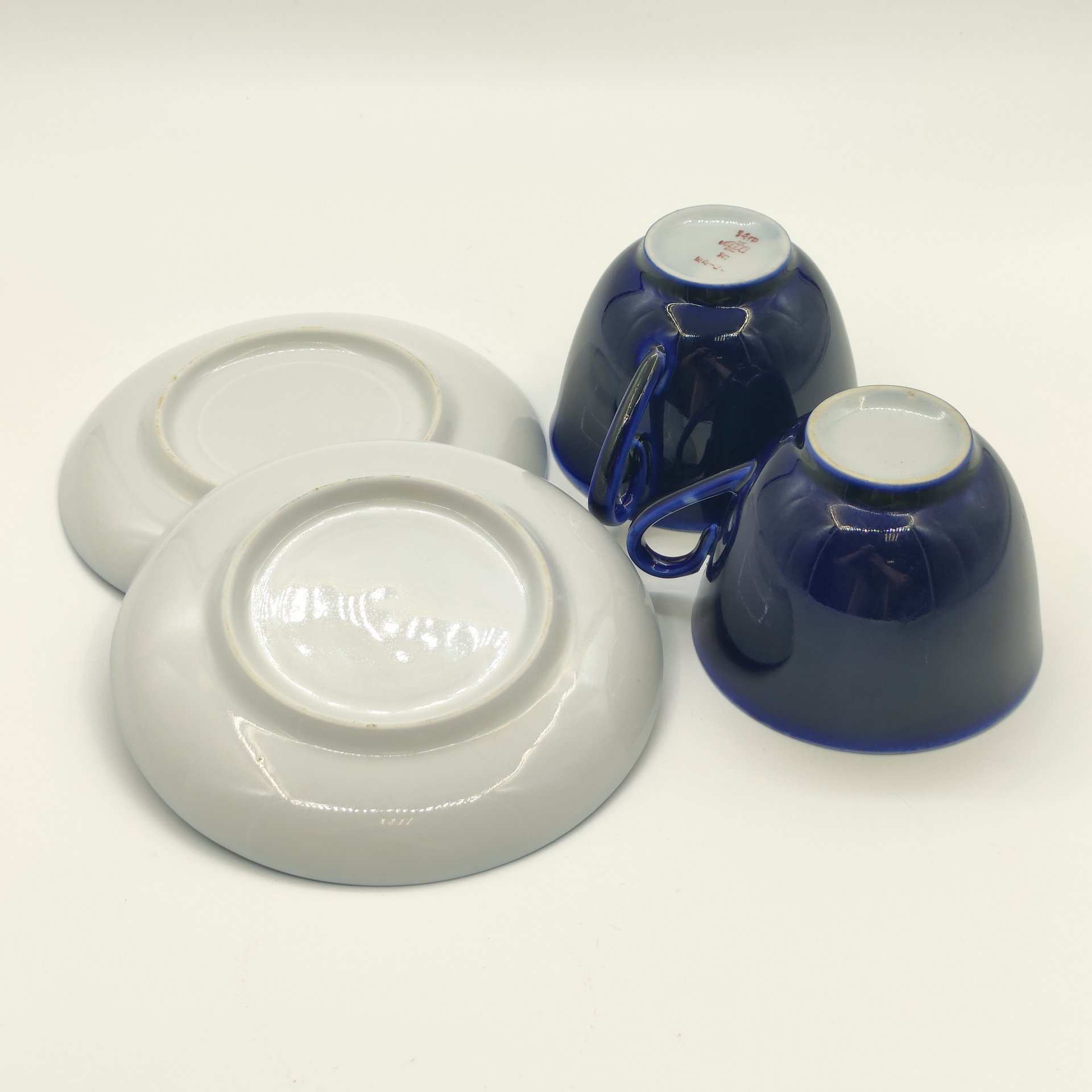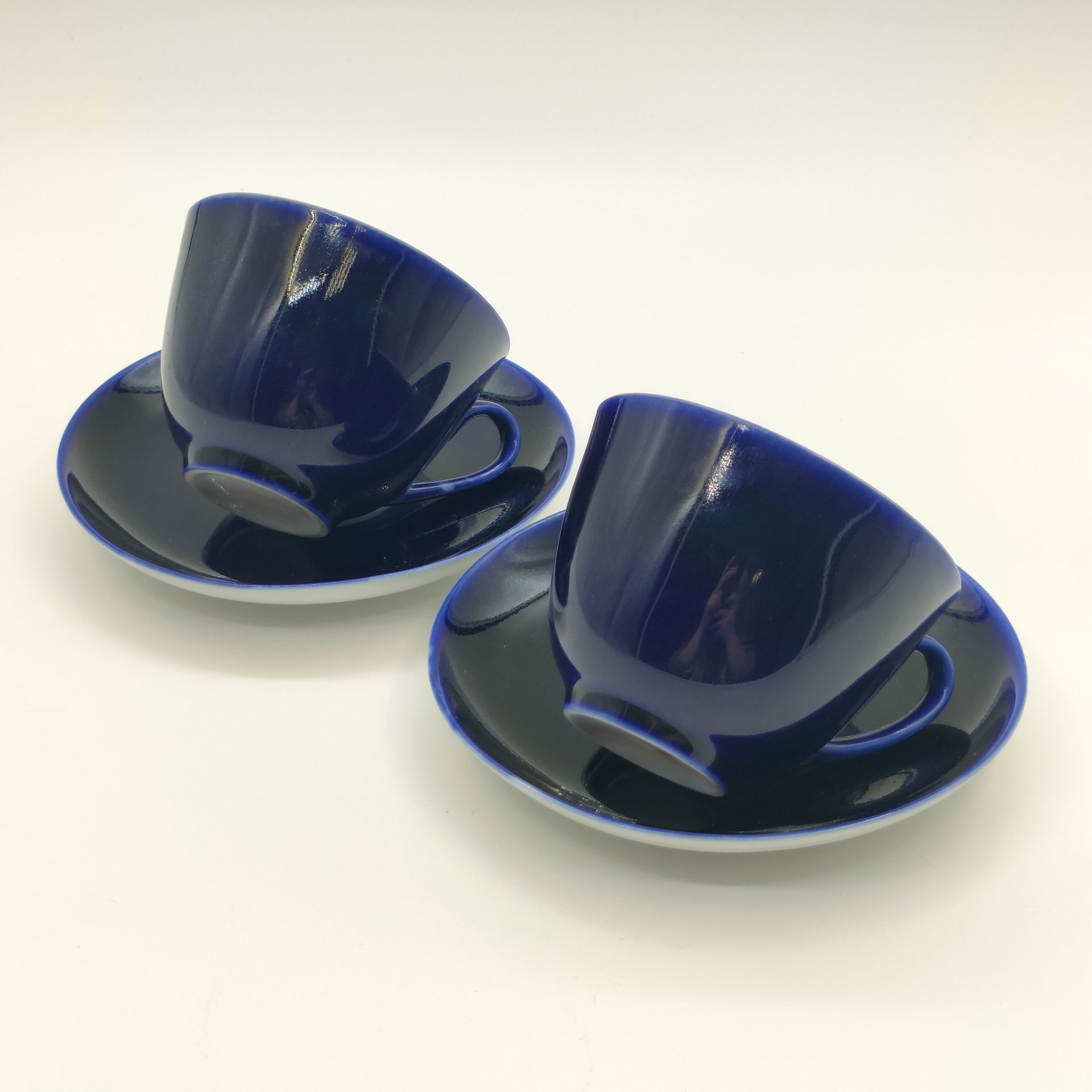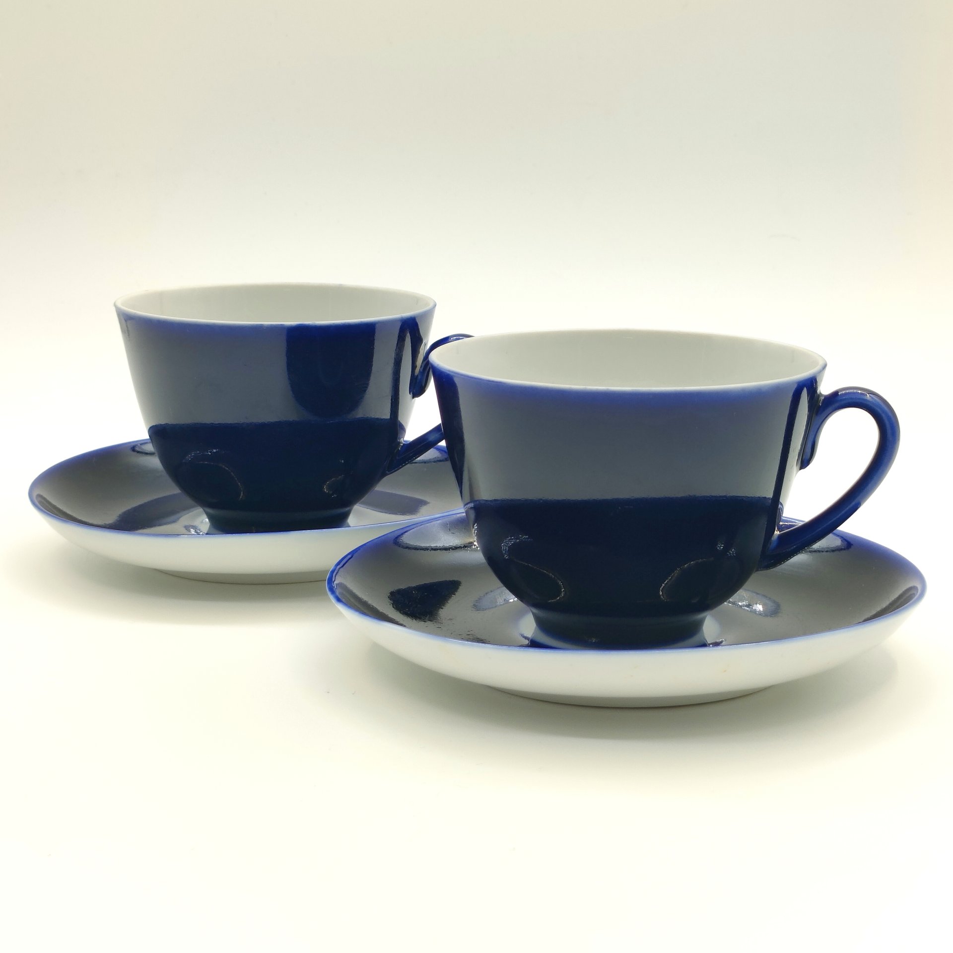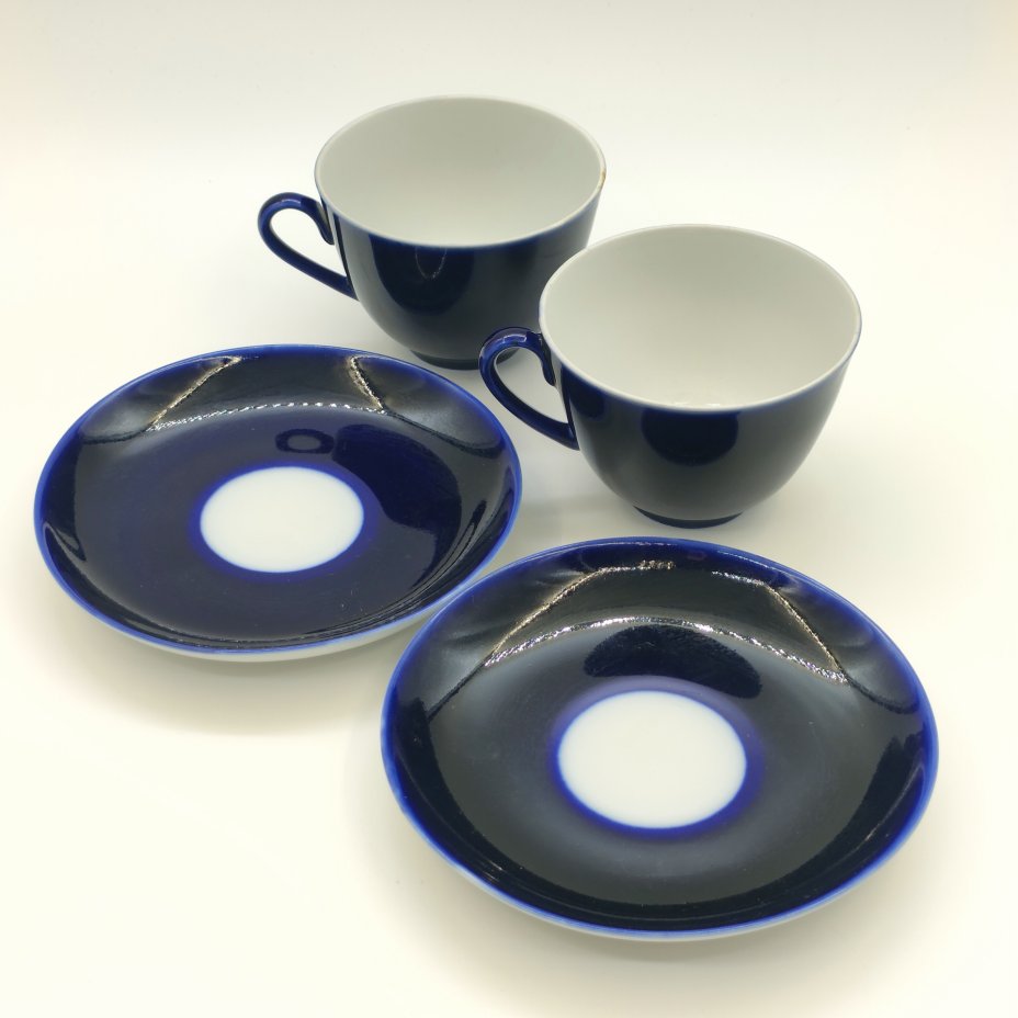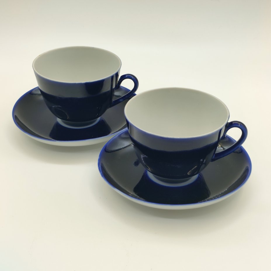 Набор из 2-х чайных пар кобальтого оттенка, фарфор, крытье кобальтом, Ленинградский фарфоровый завод (ЛФЗ), СССР, 1970-1991 гг.