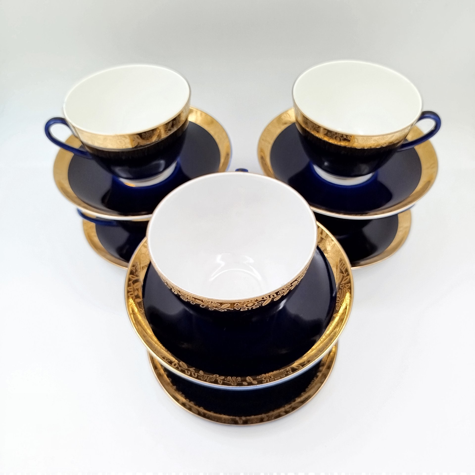 купить Набор из 6-ти чайных пар, украшенных растительным орнаментом, фарфор, крытье, золочение, Ленинградский фарфоровый завод (ЛФЗ), СССР, 1970-1989 гг.