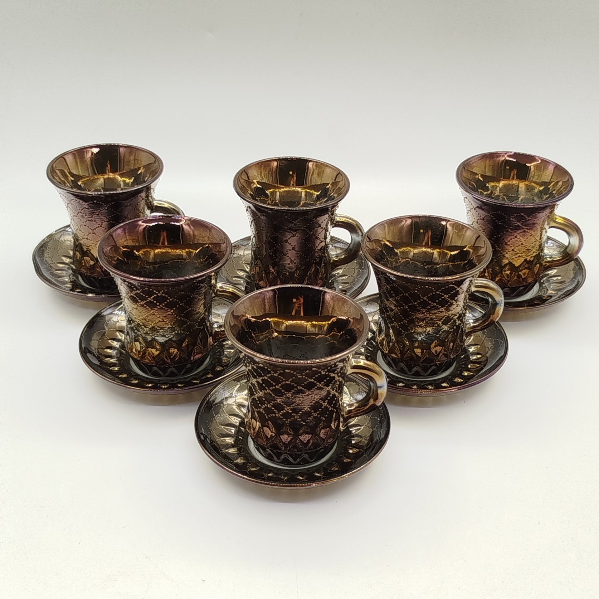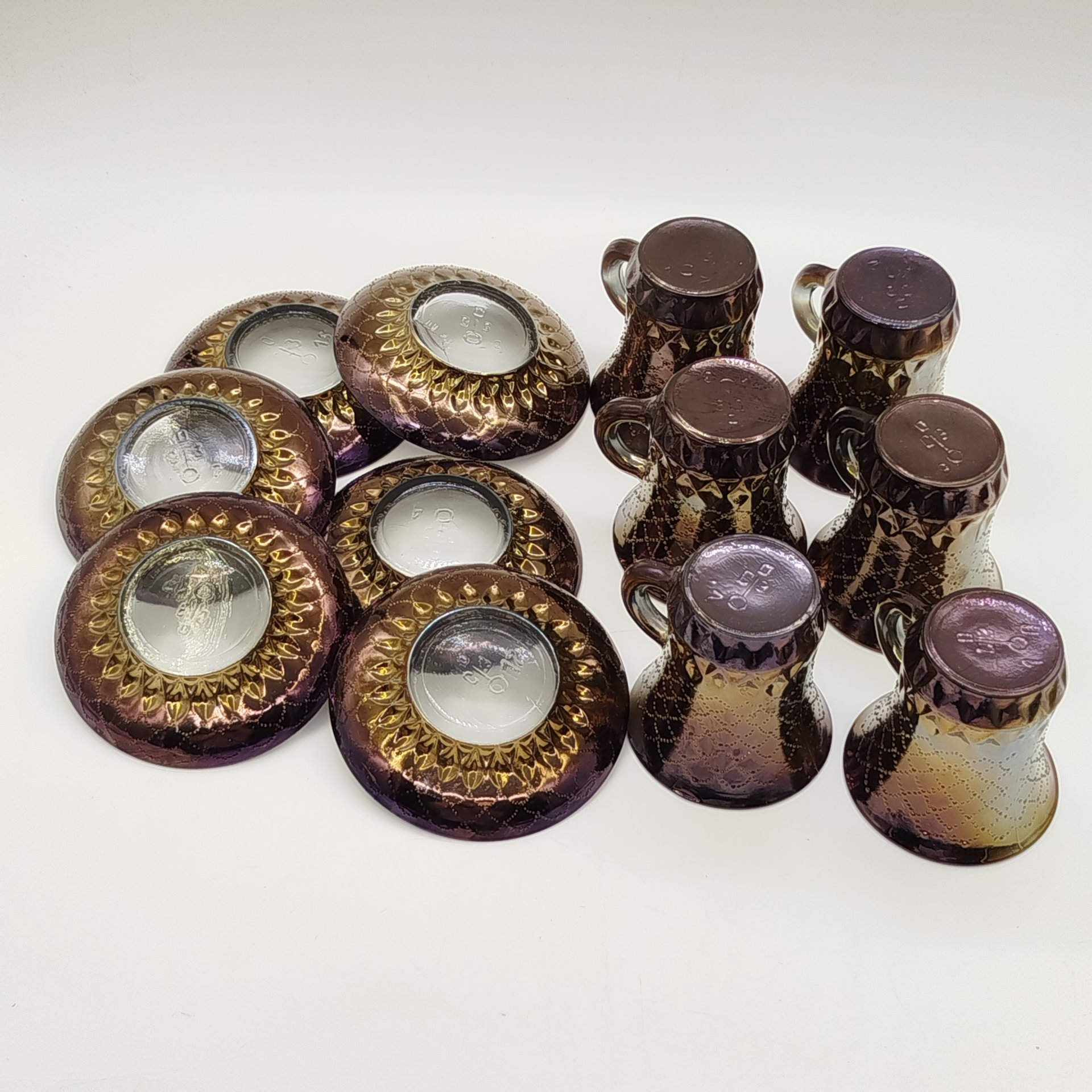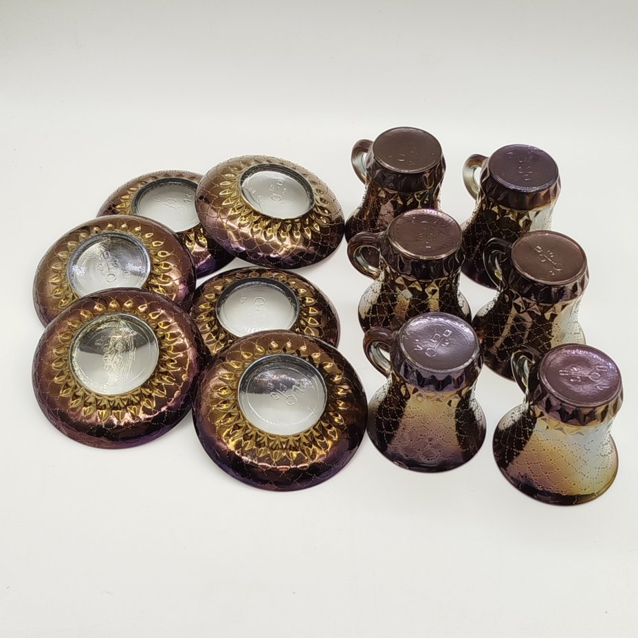 Набор из 6-ти кофейных пар с рельефным декором, стекло, пресс, Опытный стекольный завод, СССР, 1968-1999 гг.