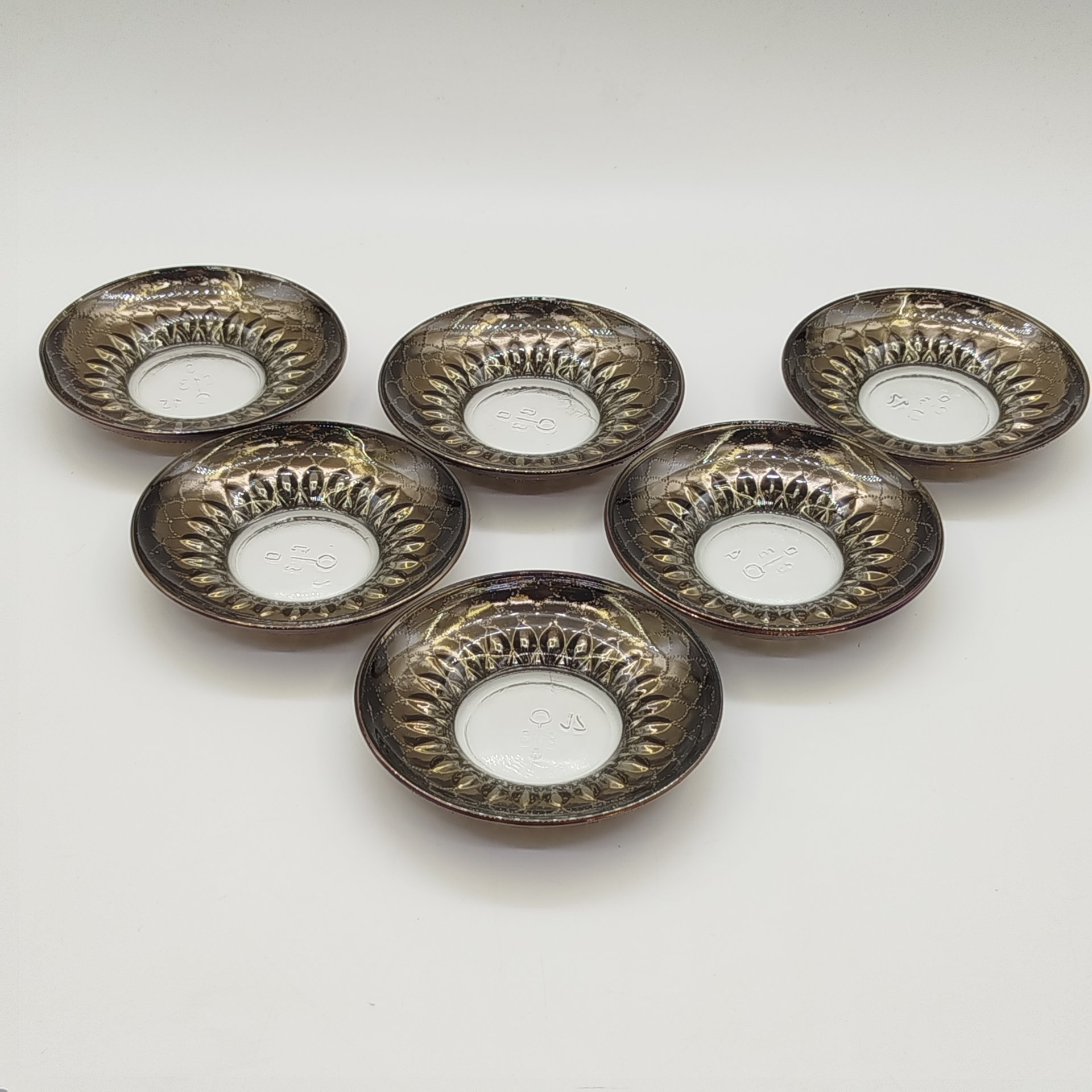 Купить Набор из 6-ти кофейных пар с рельефным декором, стекло, пресс, Опытный стекольный завод, СССР, 1968-1999 гг.