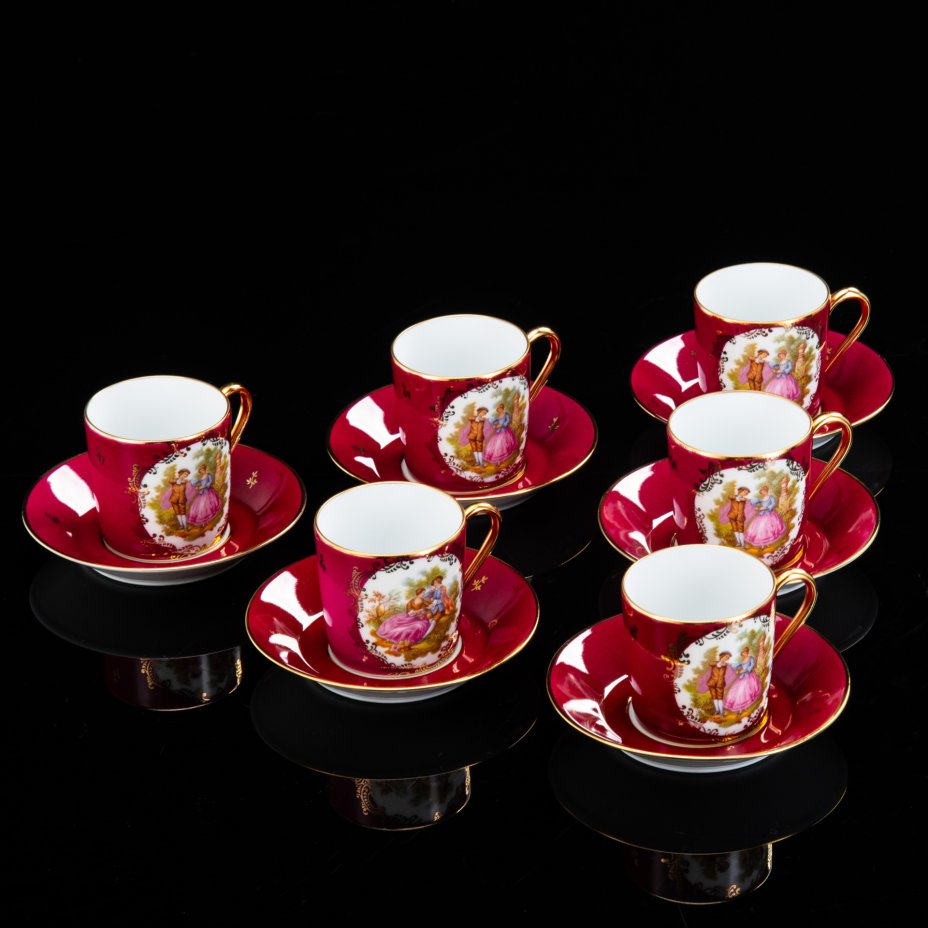Кофейная пара сувенирная, украшенная гербом города Berlin, фарфор, обводка, деколь, золочение, ГДР, 1960-1980 гг.