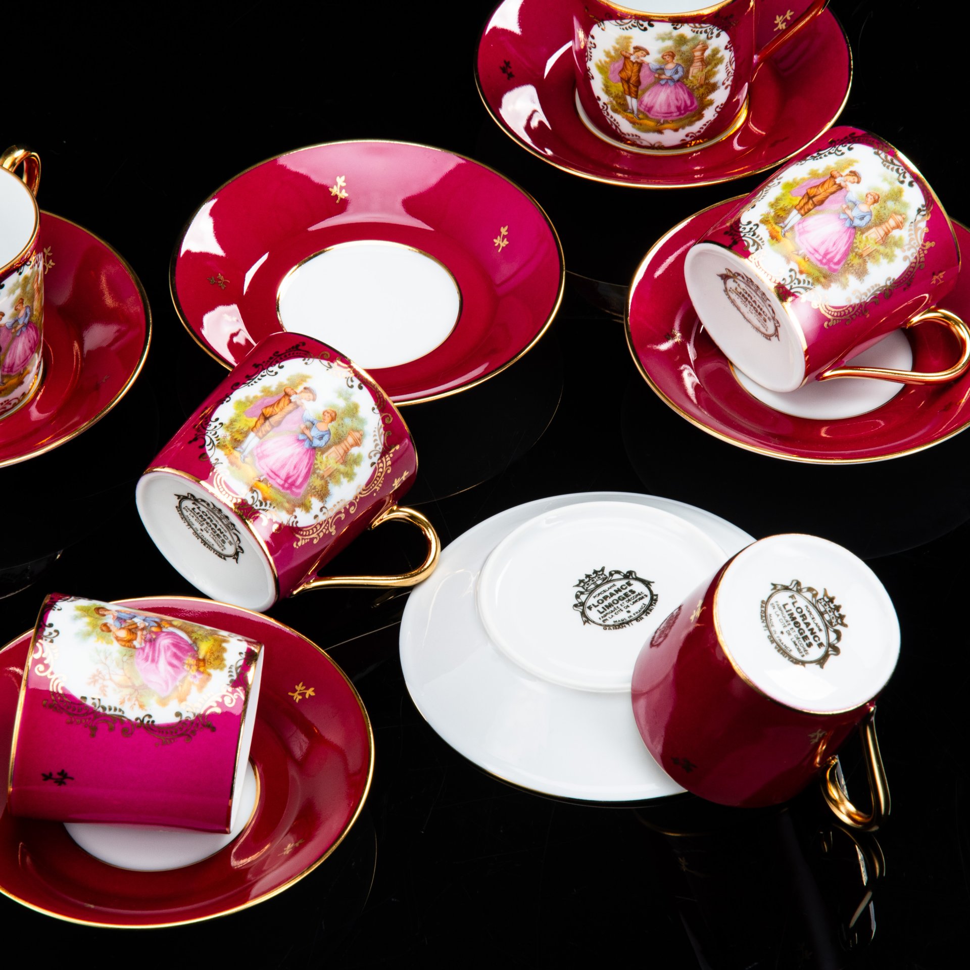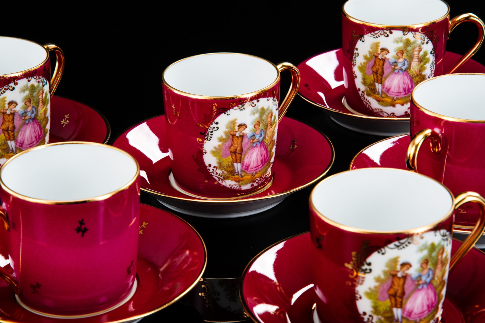 Кофейная пара "Цветы", фаянс, деколь, глазурь, золочение, Западная Европа, 1870-1900 гг.