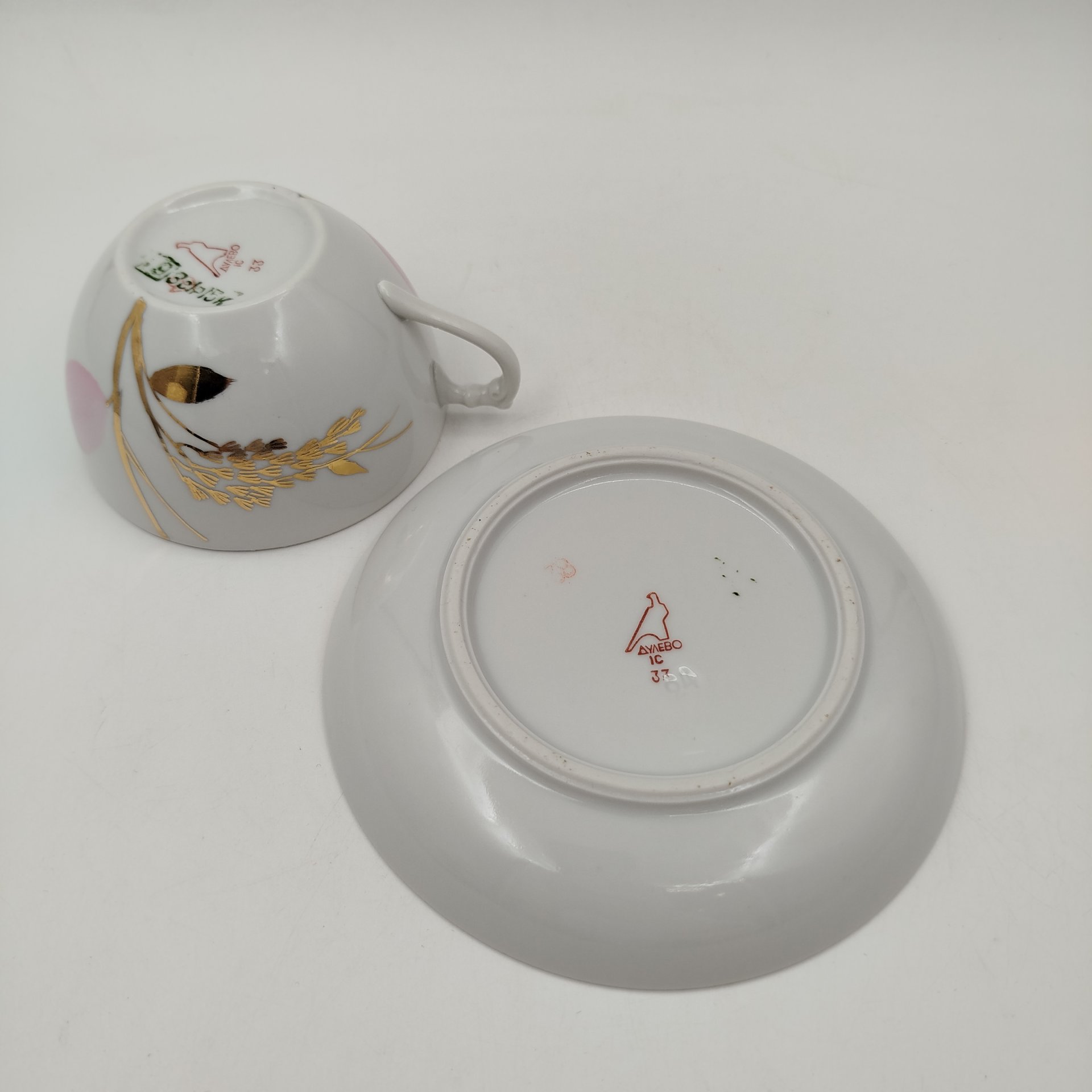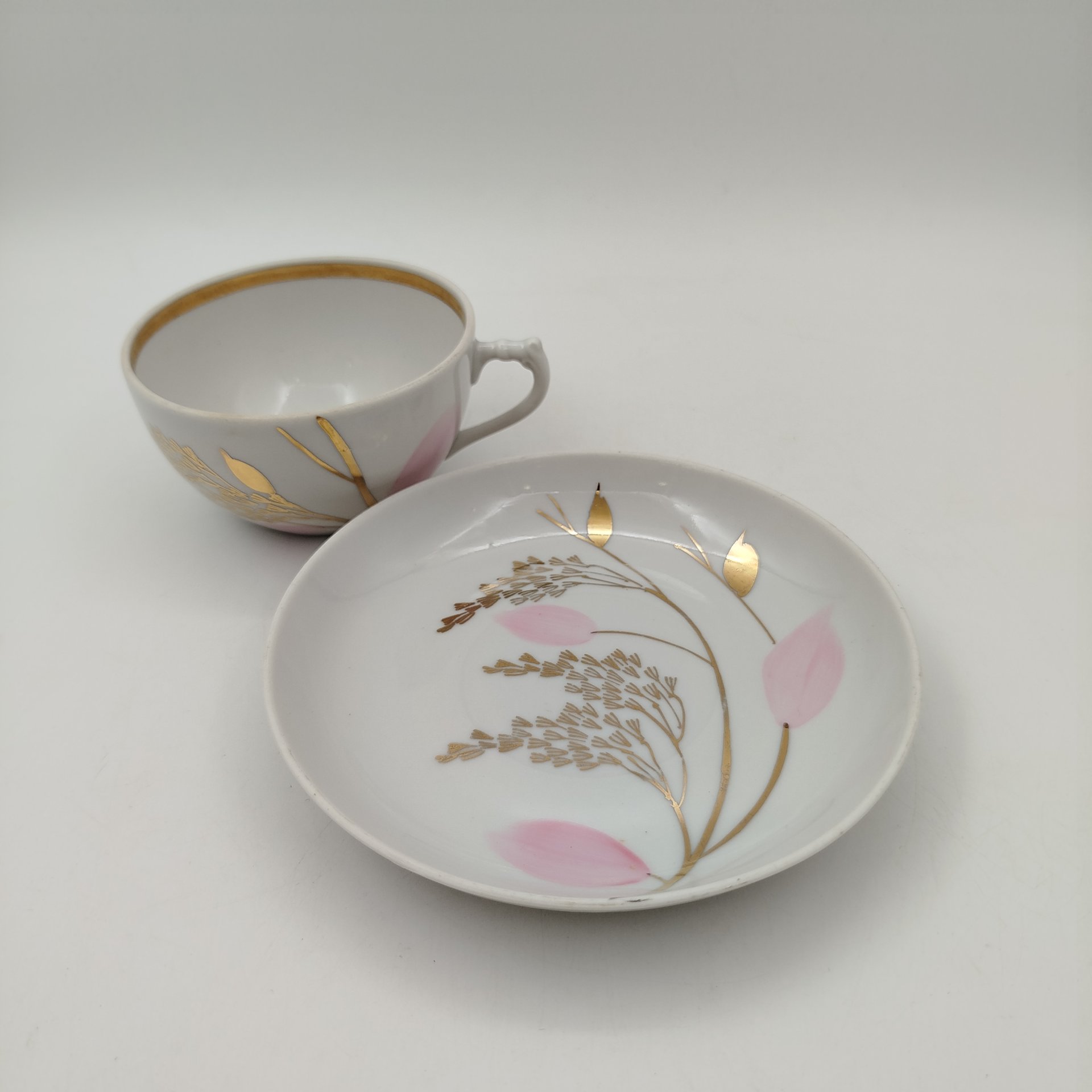 Чайная пара с цветочным декором, фарфор, роспись, золочение, Полонский фарфоровый завод, СССР, 1980-1991 гг.