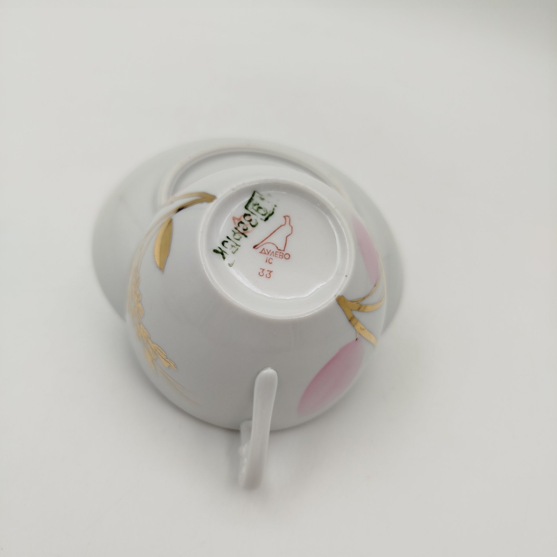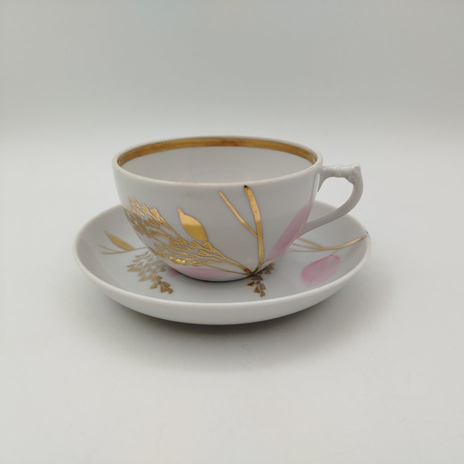 Купить Пара чайная "Сад" с золотистой каймой, фарфор, золочение, Императорский фарфоровый завод (ИФЗ), СССР, 2006-2023 гг.