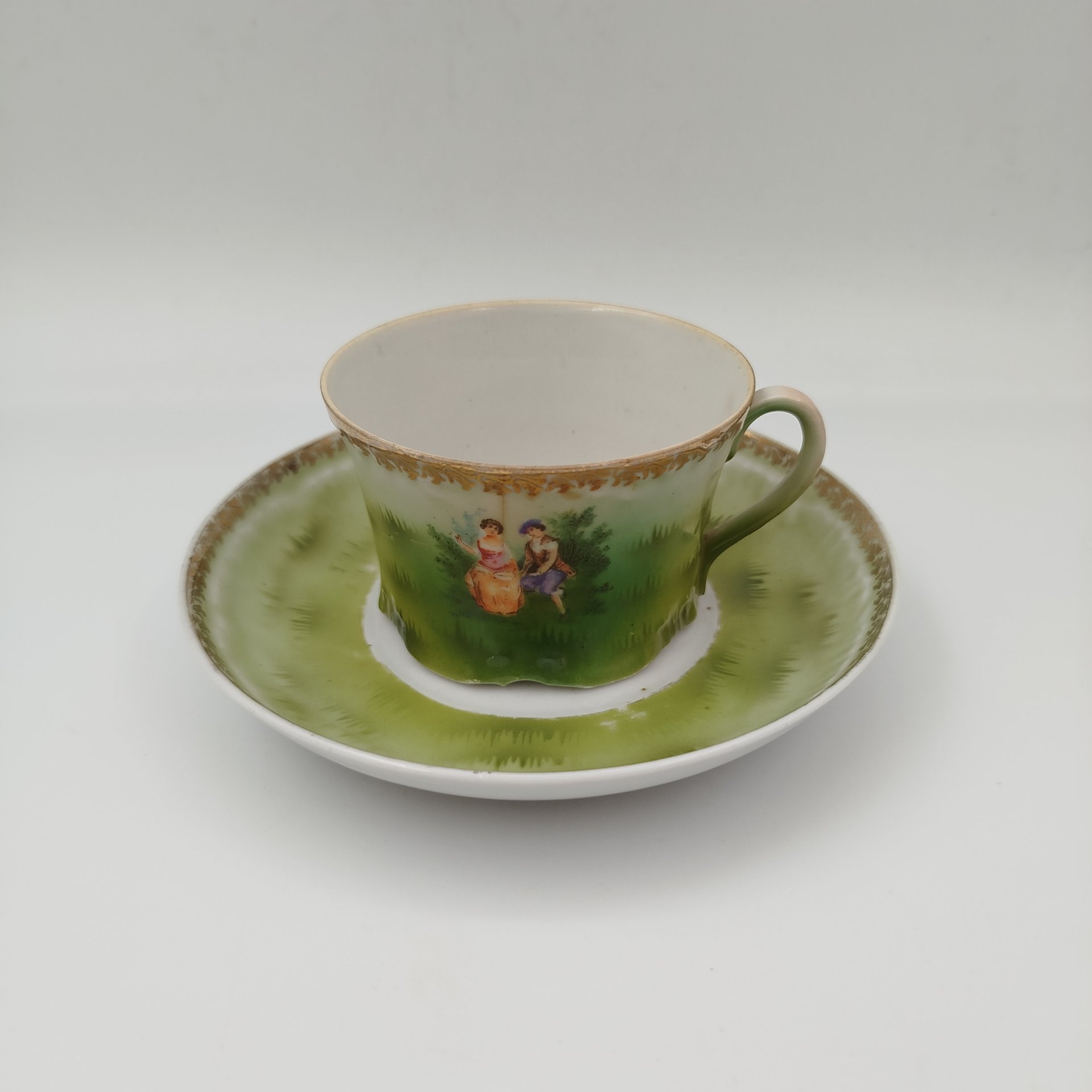 Купить Пара чайная "Сад" с золотистой каймой, фарфор, золочение, Императорский фарфоровый завод (ИФЗ), СССР, 2006-2023 гг.