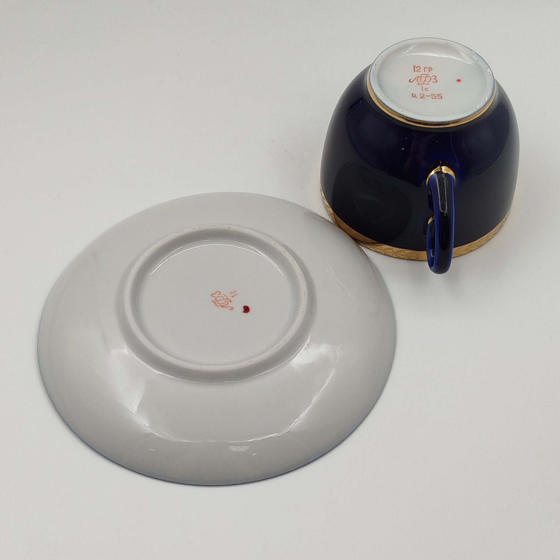 Пара чайная "Вьюнок" (форма "Тюльпан"), фарфор, деколь, золочение, Ленинградский фарфоровый завод (ЛФЗ), СССР, 1970-1992 гг.