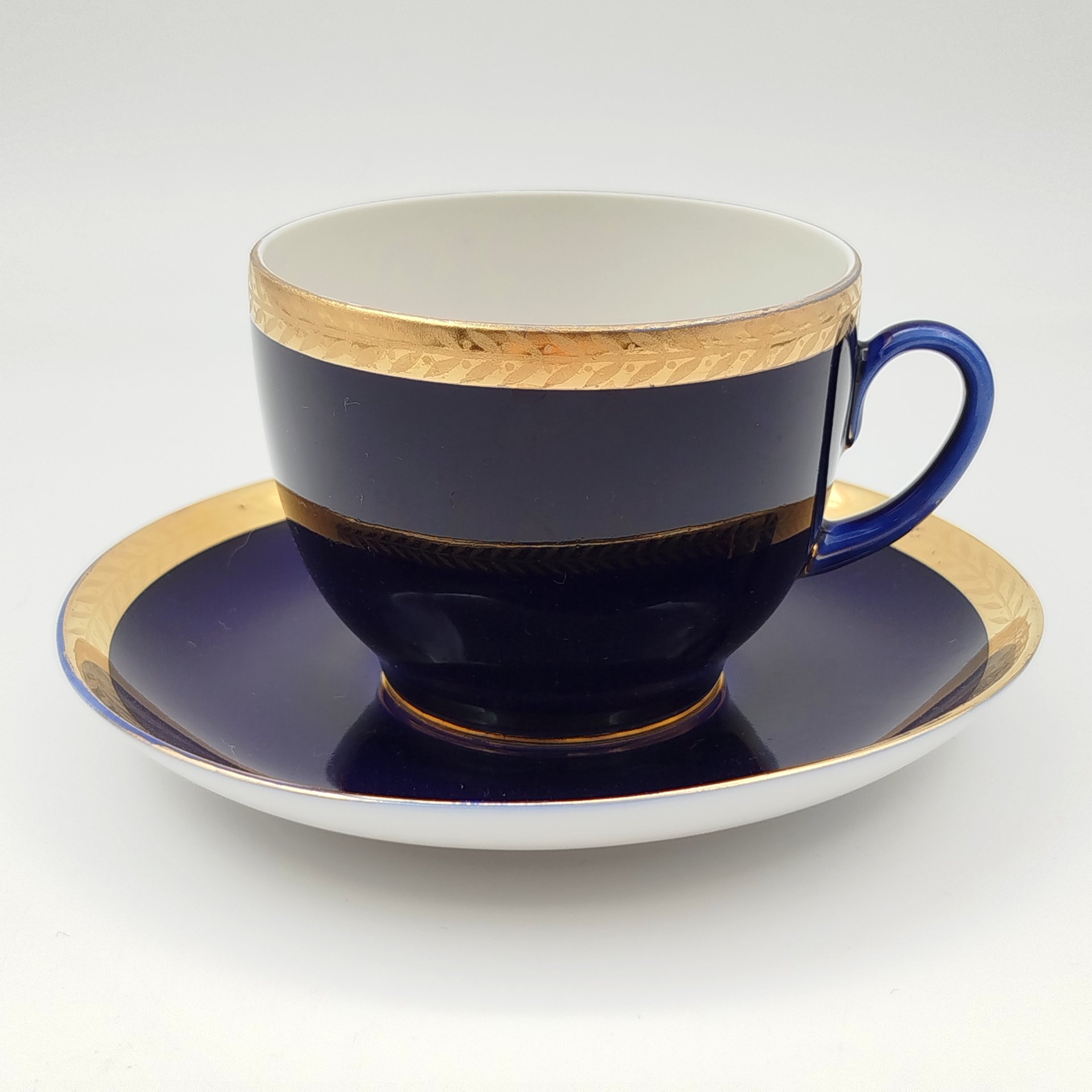 Купить Пара чайная "Сад" с золотистой каймой, фарфор, золочение, Императорский фарфоровый завод (ИФЗ), СССР, 2006-2023 гг.