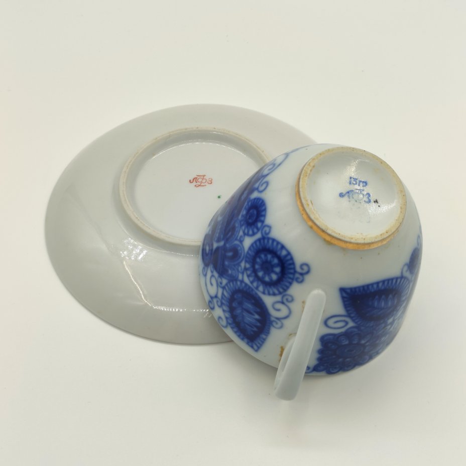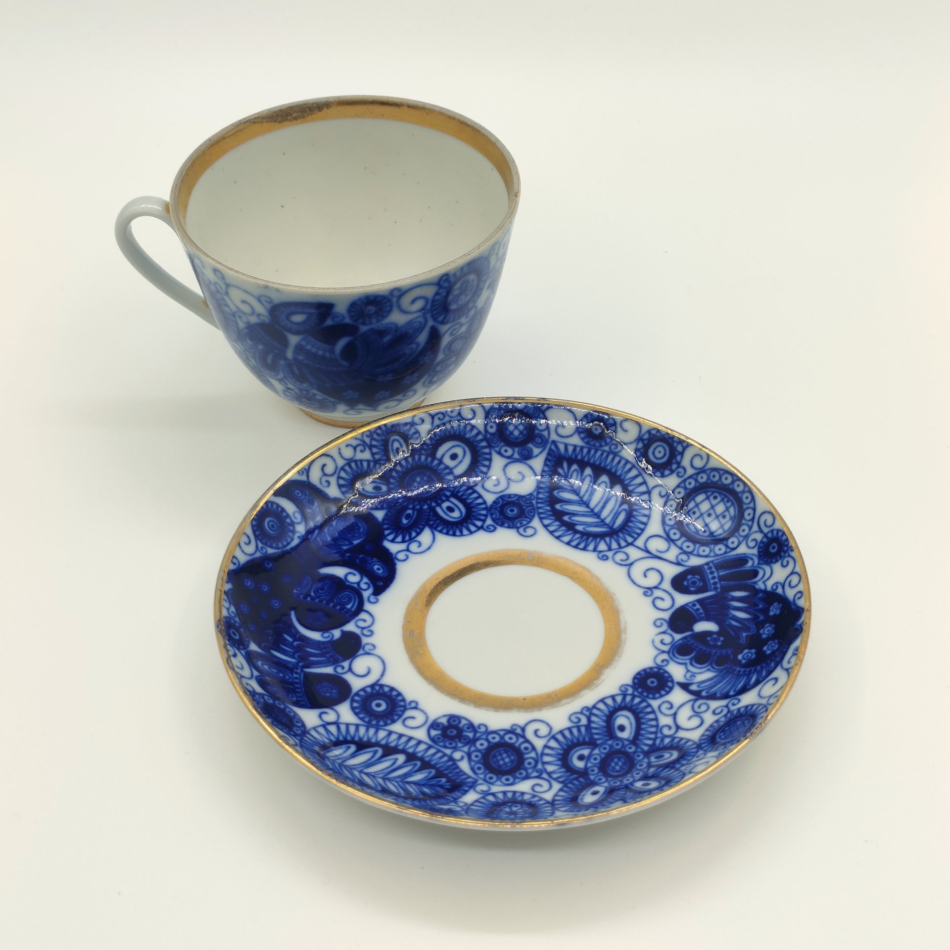 Пара чайная с цветочным декором, фарфор, роспись, золочение, Западная Европа, 1880-1910 гг.
