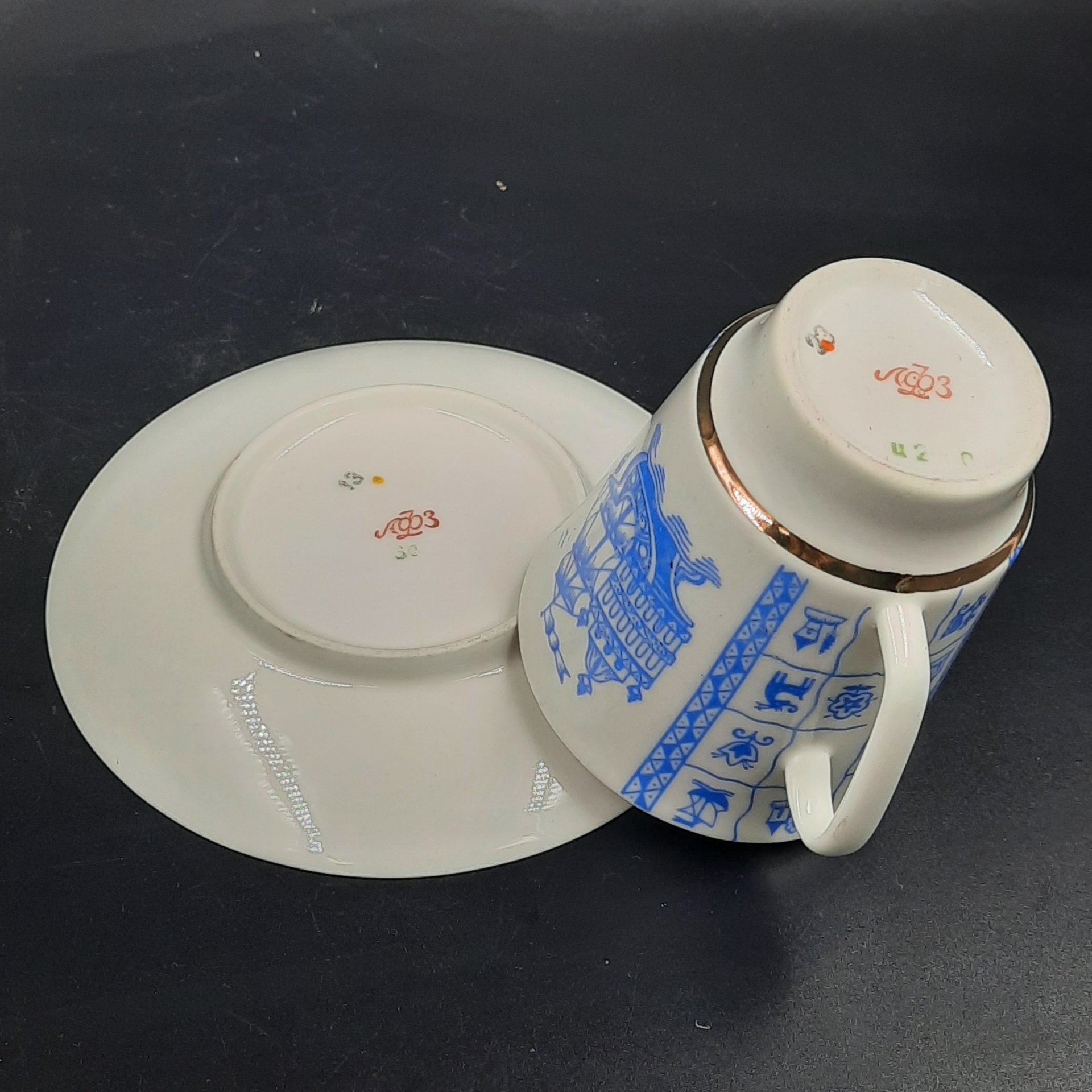 Купить Пара чайная "Сад" с золотистой каймой, фарфор, золочение, Императорский фарфоровый завод (ИФЗ), СССР, 2006-2023 гг.