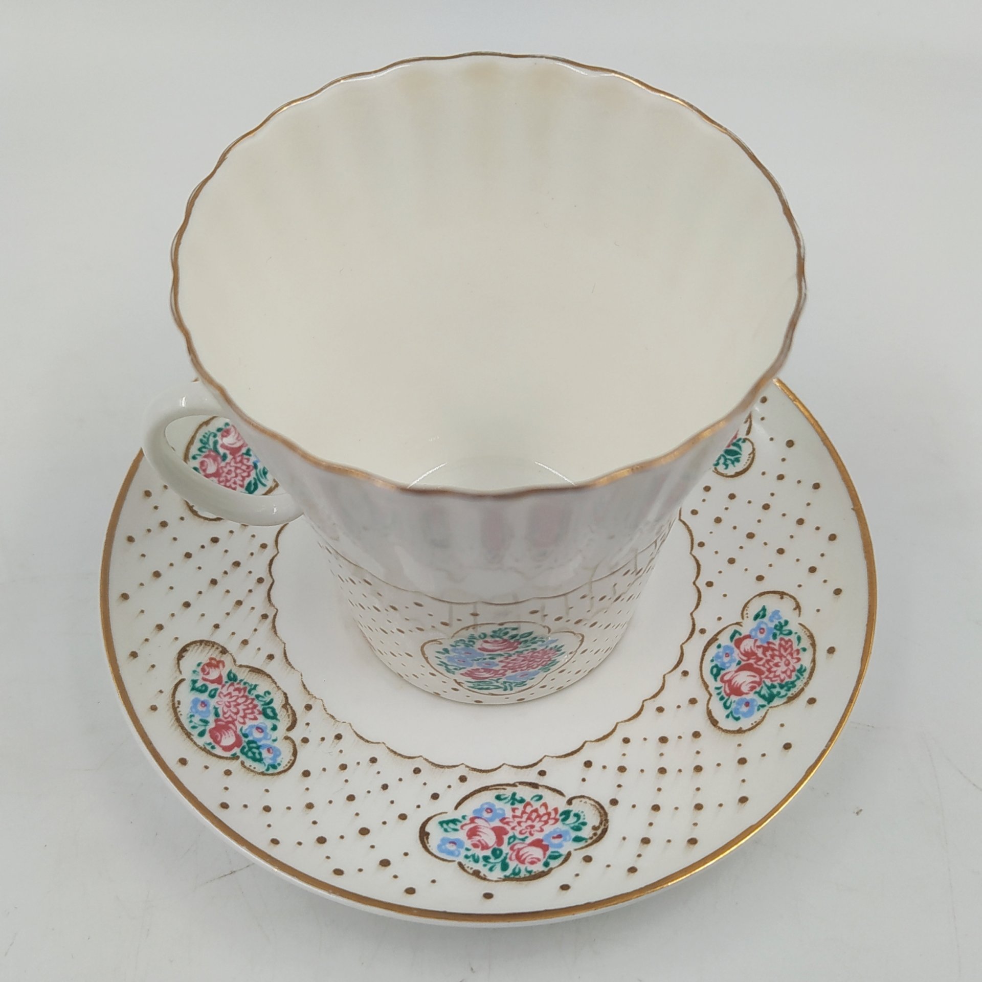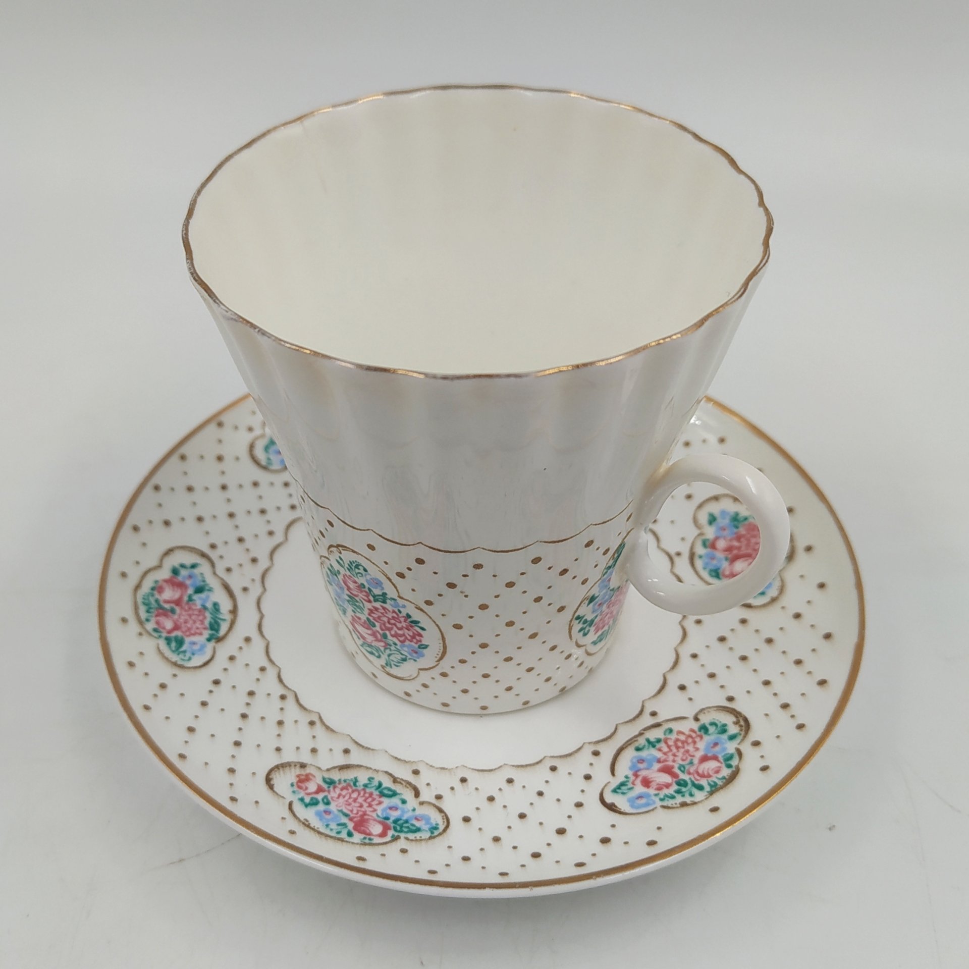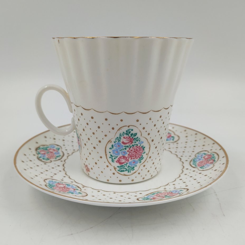 Купить Пара кофейная с цветочным декором в резервах (форма "Одуванчик"), фарфор, деколь, золочение, Ленинградский фарфоровый завод (ЛФЗ), СССР, 1970-1992 гг.