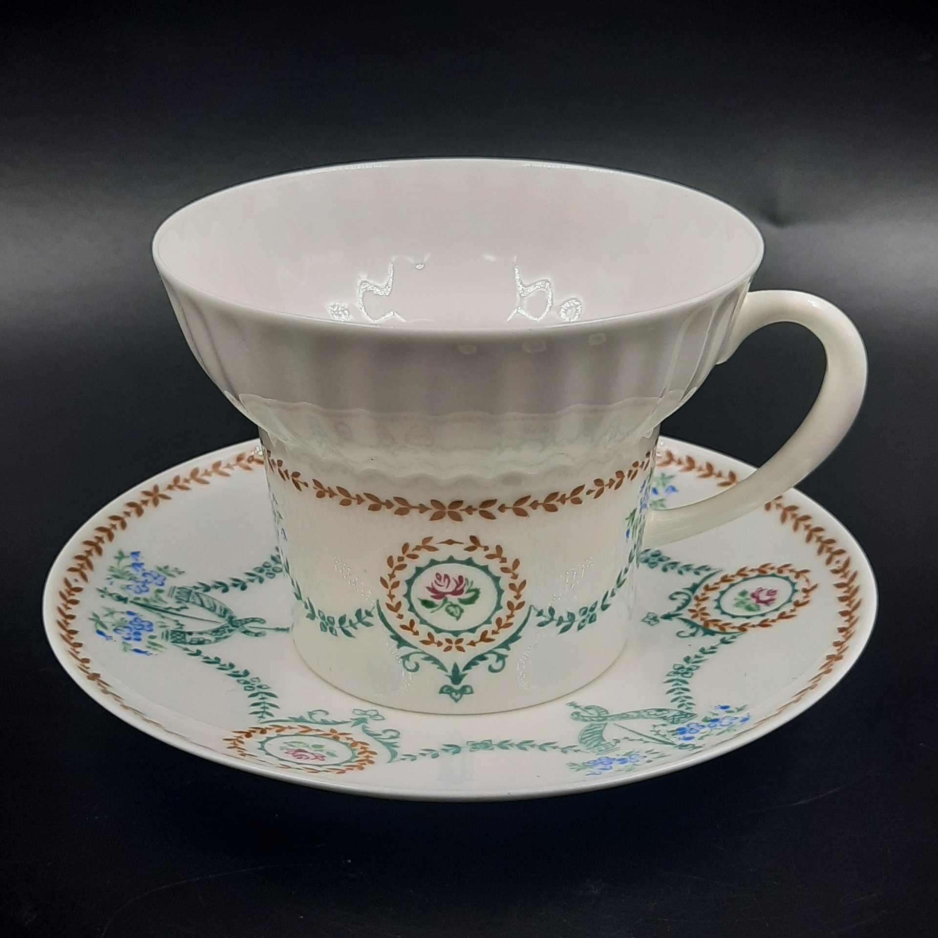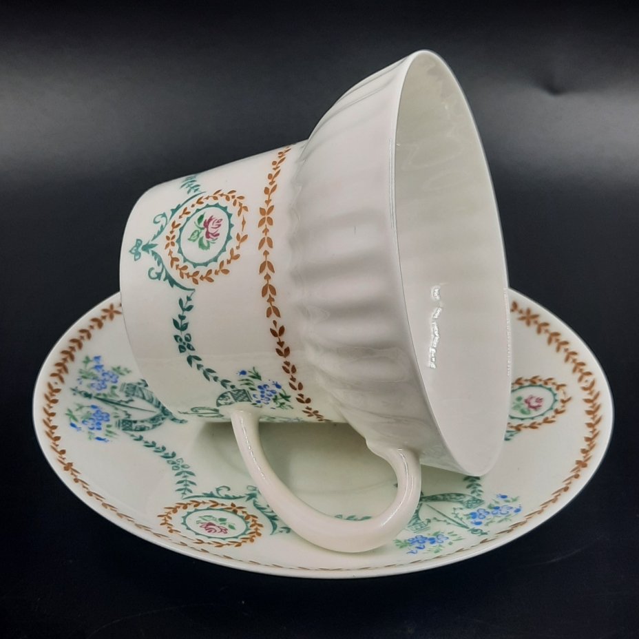 Пара чайная "Вьюнок" (форма "Тюльпан"), фарфор, деколь, золочение, Ленинградский фарфоровый завод (ЛФЗ), СССР, 1970-1992 гг.
