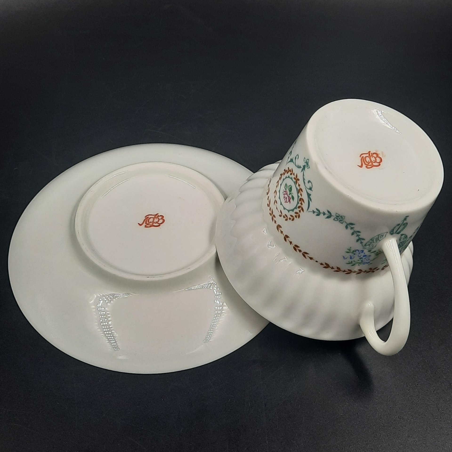 Пара чайная "Сад" с золотистой каймой, фарфор, золочение, Императорский фарфоровый завод (ИФЗ), СССР, 2006-2023 гг.
