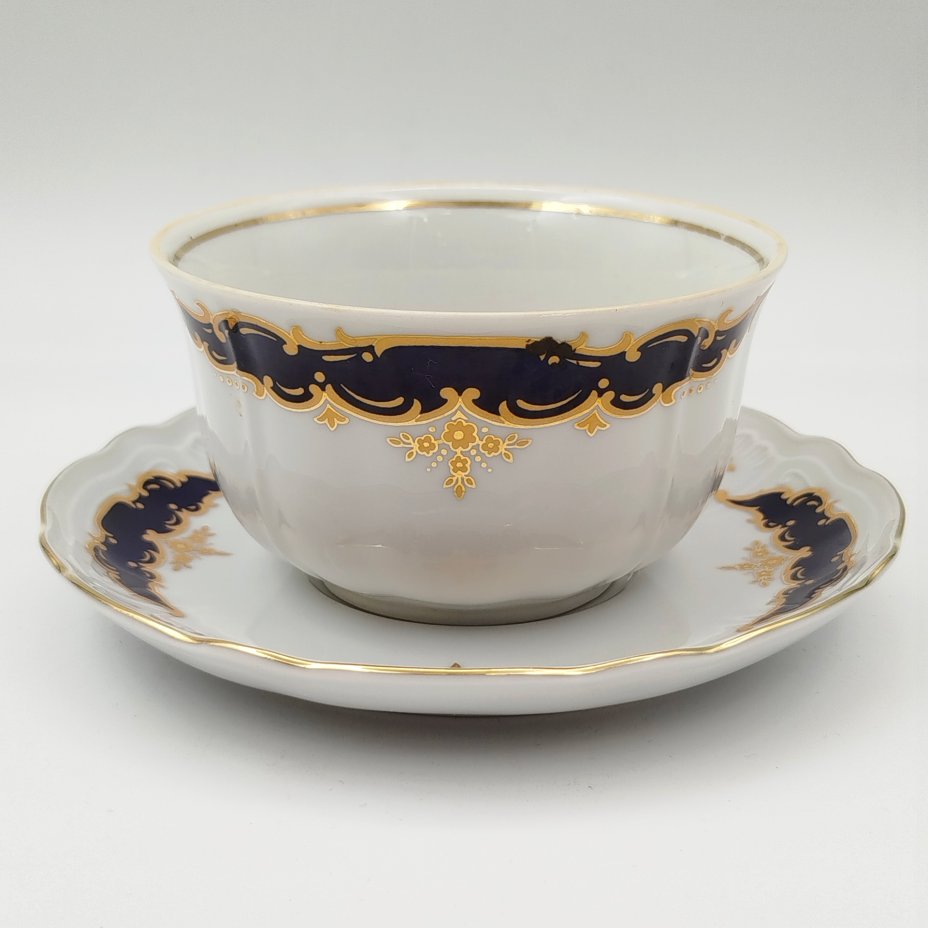 Купить Пара чайная "Сад" с золотистой каймой, фарфор, золочение, Императорский фарфоровый завод (ИФЗ), СССР, 2006-2023 гг.