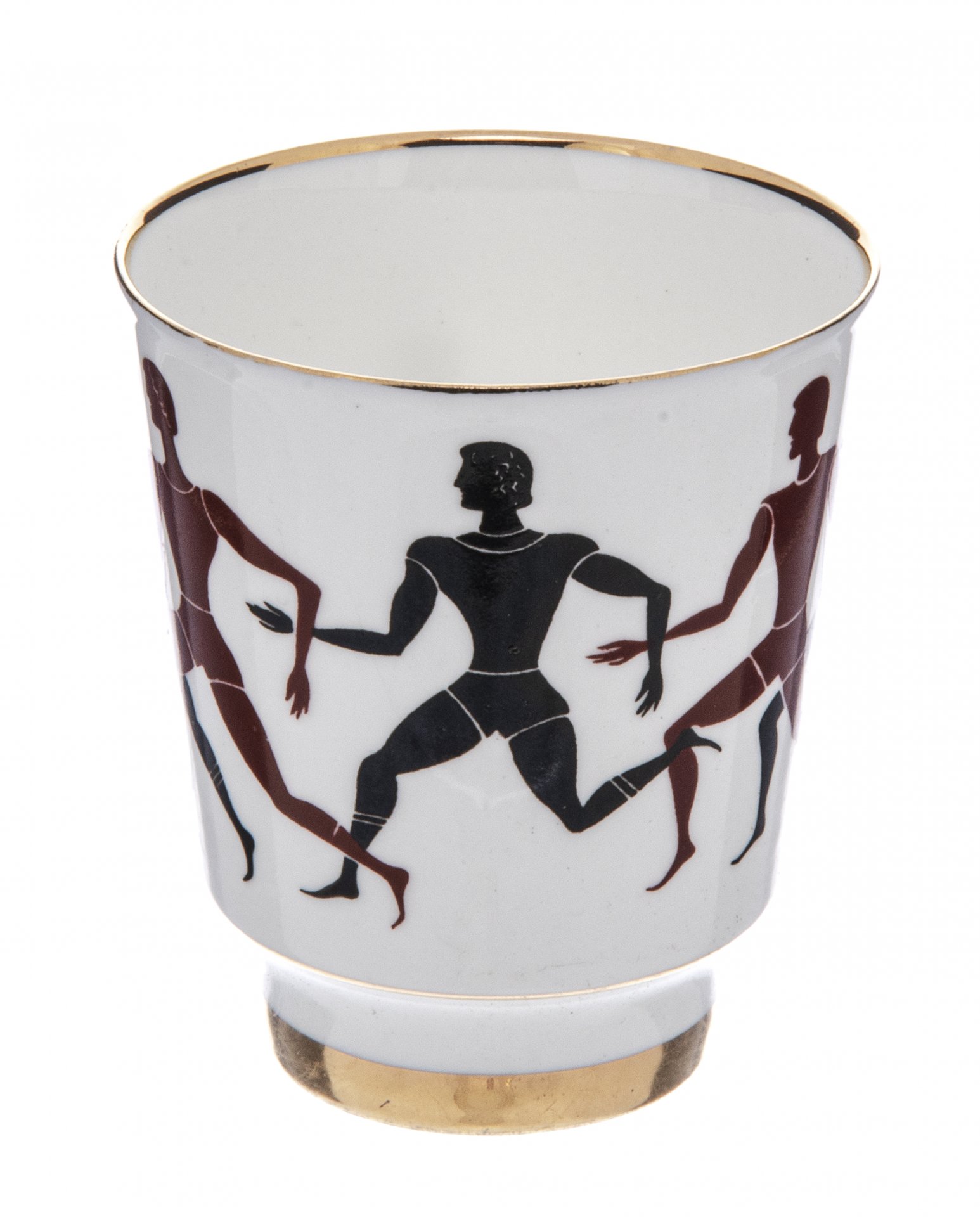Пара чайная с двусторонним расписным цветочным декором в русском стиле, фарфор, роспись, золочение, Фарфоровый завод «Пролетарий» (Бронница, Мста), СССР, 1953-1958 гг.