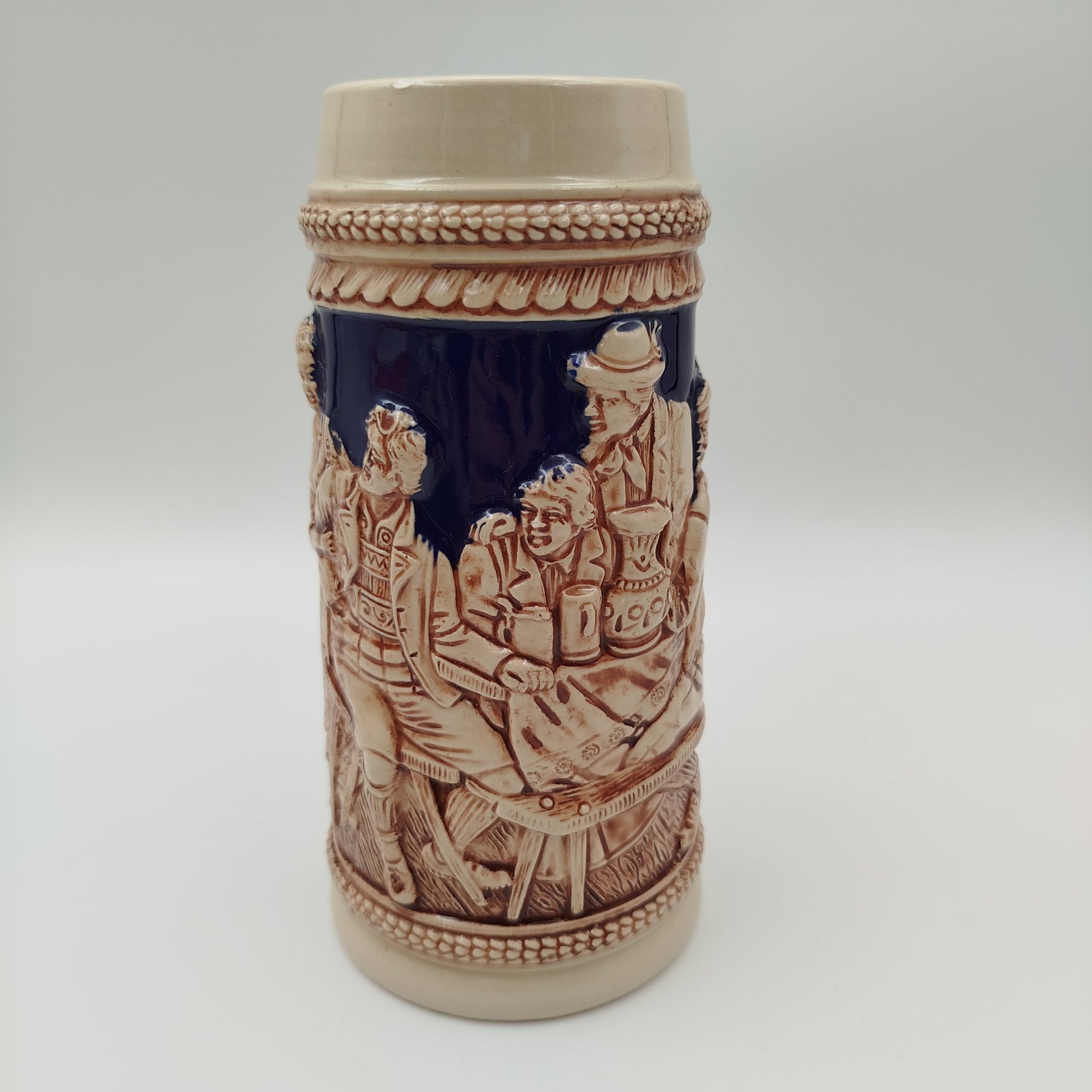 Кружка пивная с крышкой и рельефным декором "В трактире", керамика, рельеф, золочение, Германия, 1960-1990 гг.