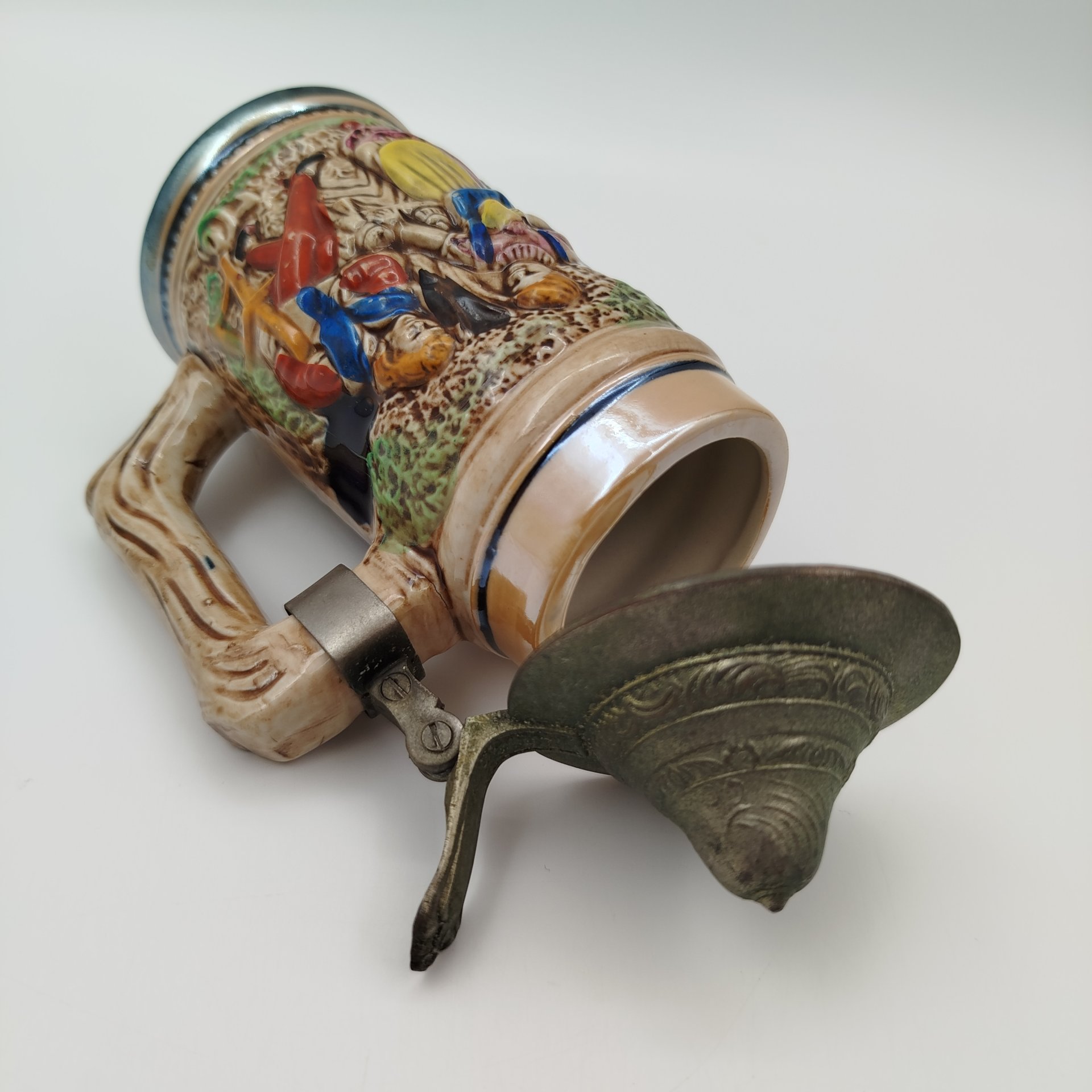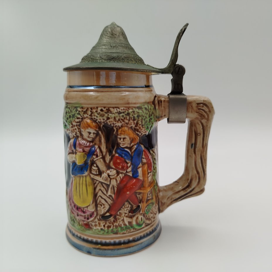 Кружка пивная с изображением сцены флирта (Прощание охотника), керамика, рельеф, Marzi & Remy, Германия, 1964-1990 гг.