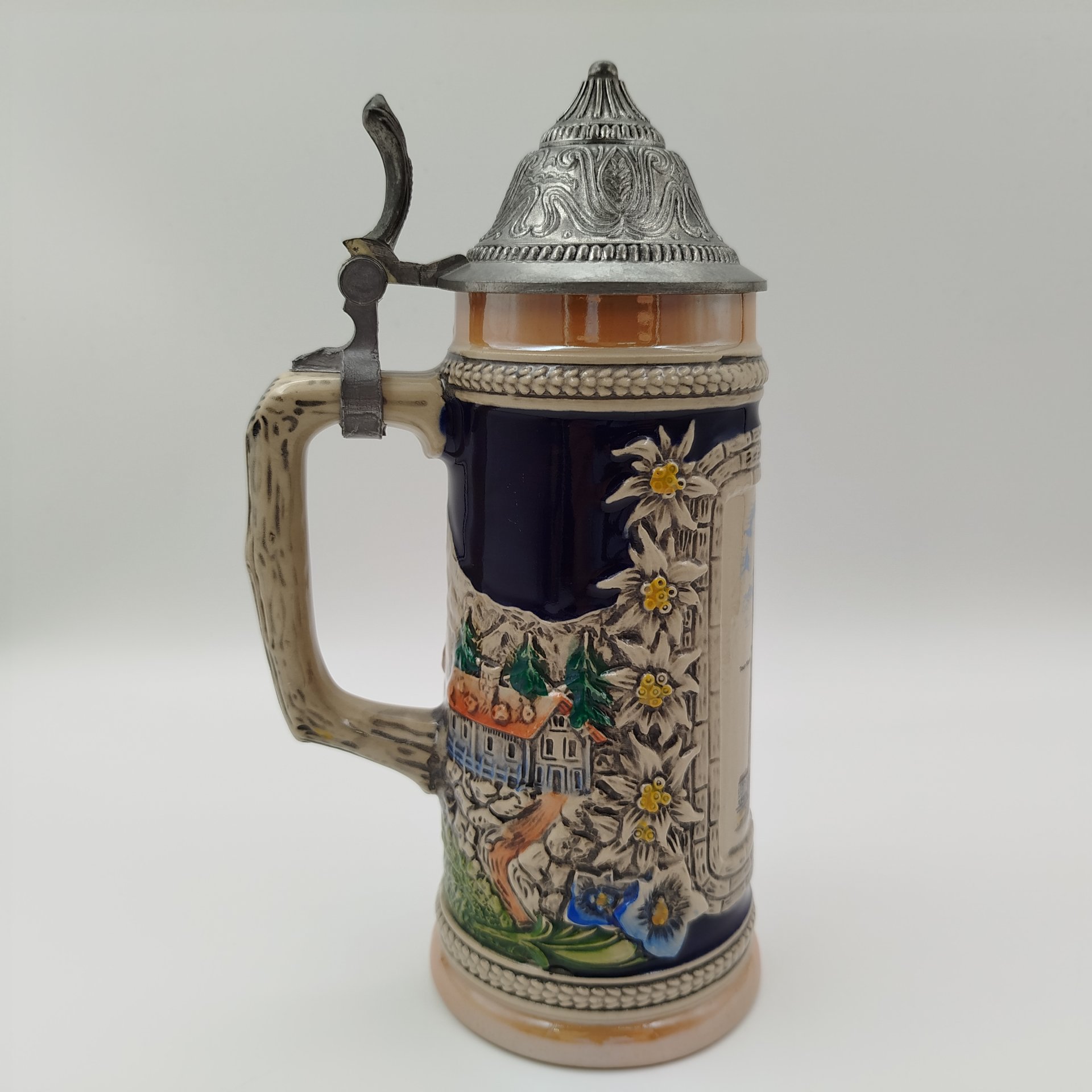 Кружка пивная с изображением сцены флирта (Прощание охотника), керамика, рельеф, Marzi & Remy, Германия, 1964-1990 гг.