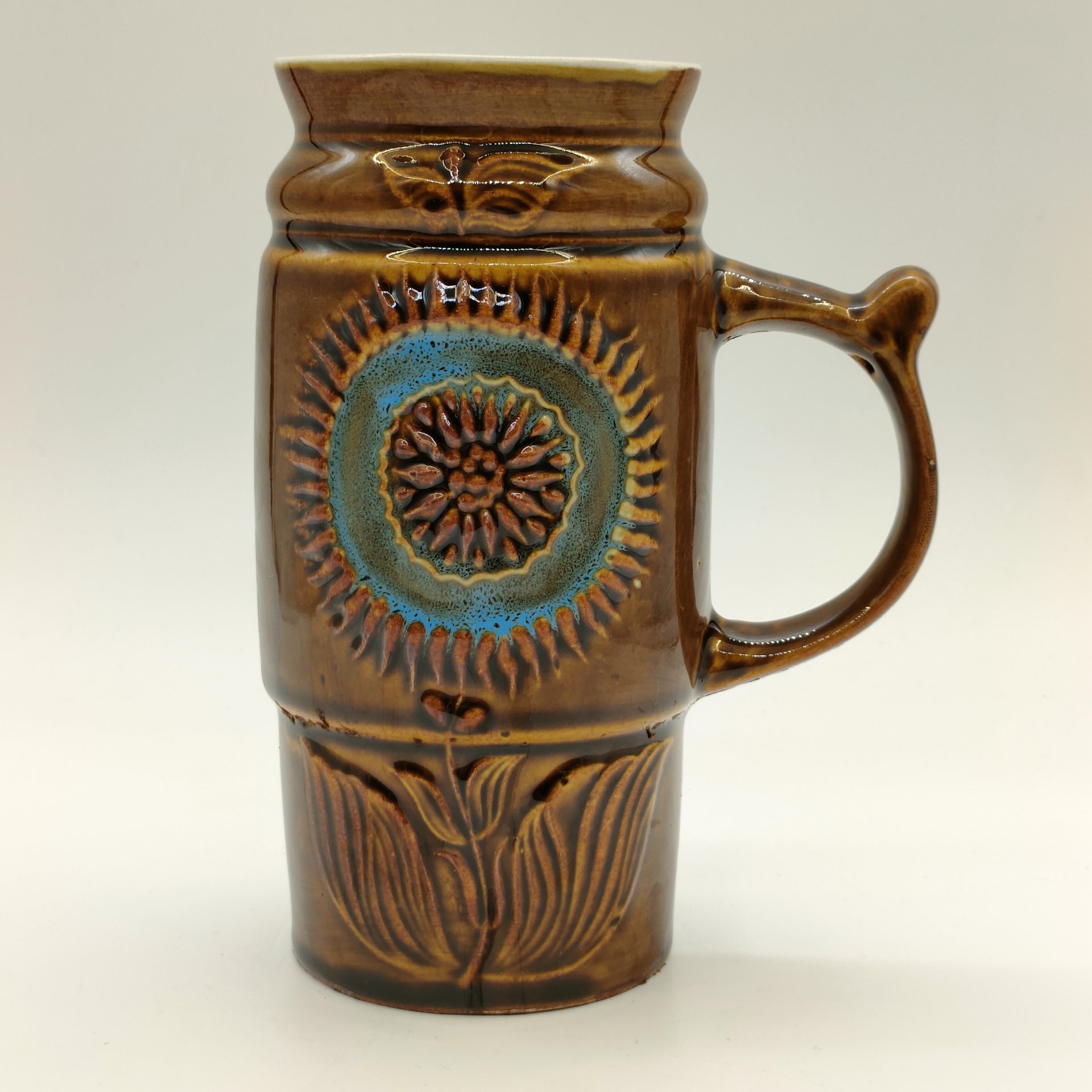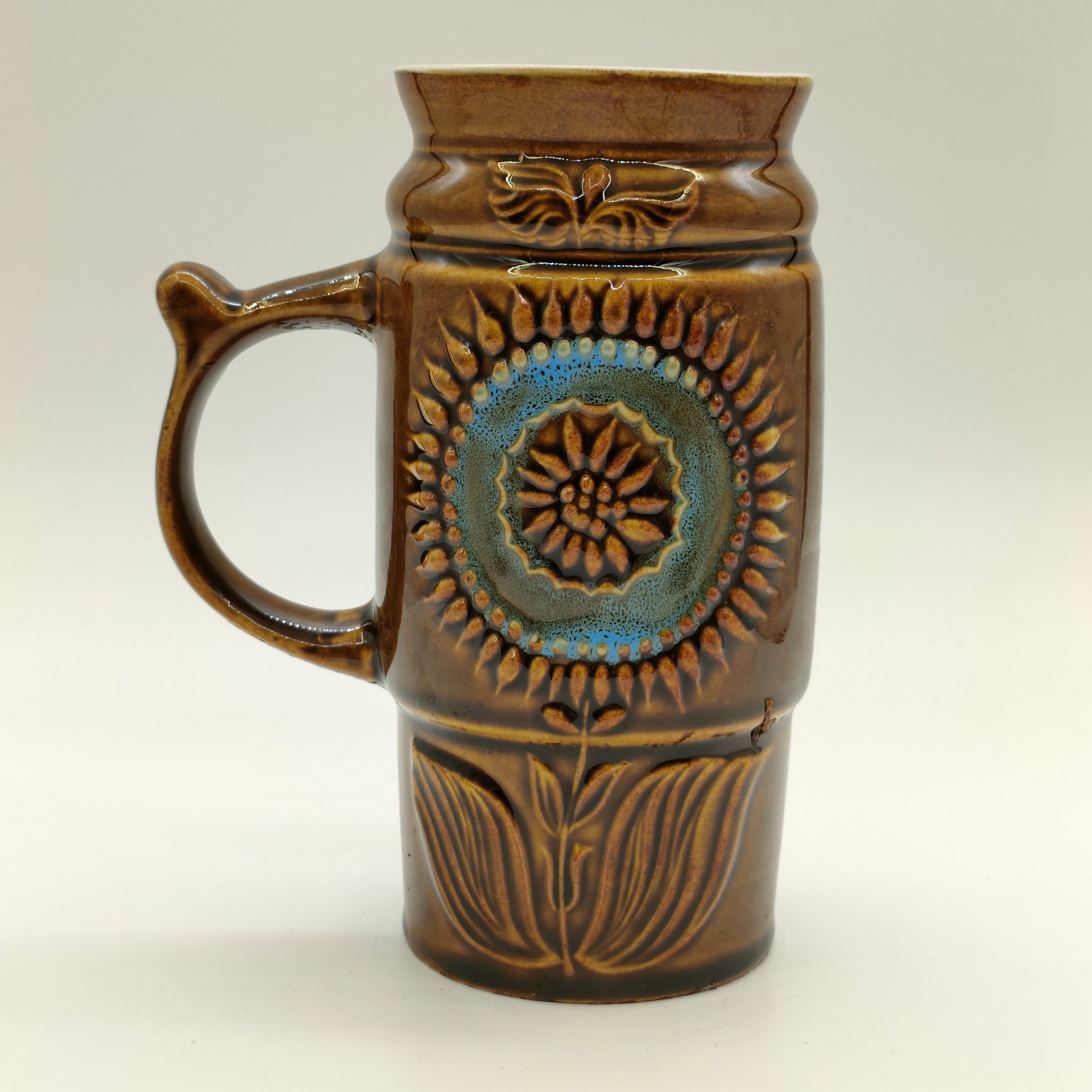 Пивная кружка с крышкой, с изображением цветов, керамика, деколь, олово, Западная Европа, 1970-1990 гг.