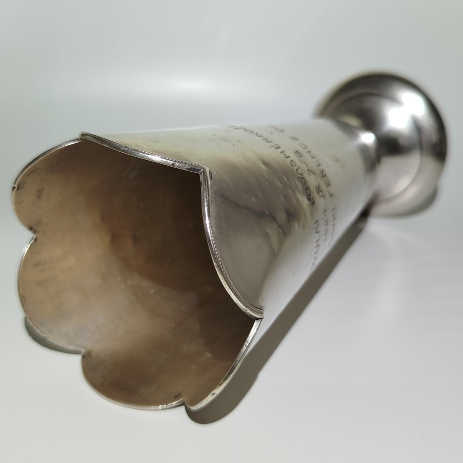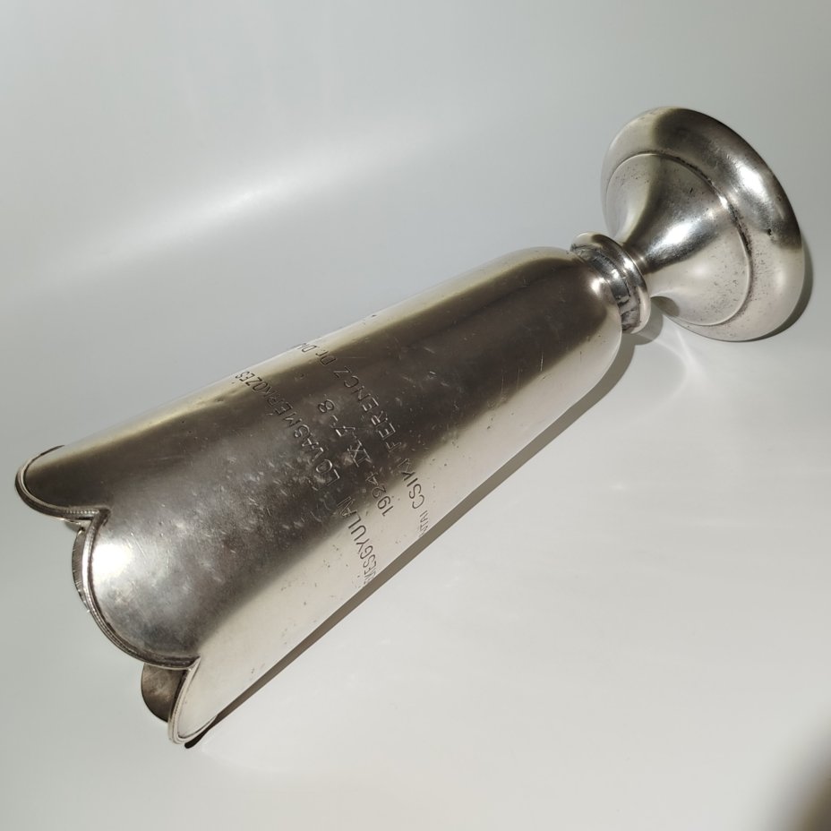 Кубок за участие в соревновании по верховой езде с надписью "Békésgyulai lovasmérkоzés 1924 IX 7-8 Nagyajtai Csiki Ferencz Dr. Dija", металл, Венгрия, 1924 г.