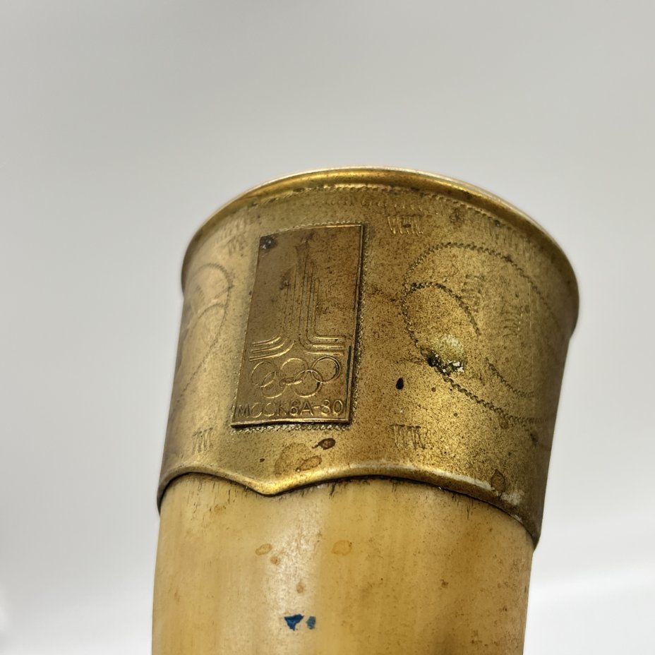 Рог изобилия (кубок для вина) "Олимпиада-80" с фигурным навершием, металл, рог, СССР, 1980 г.
