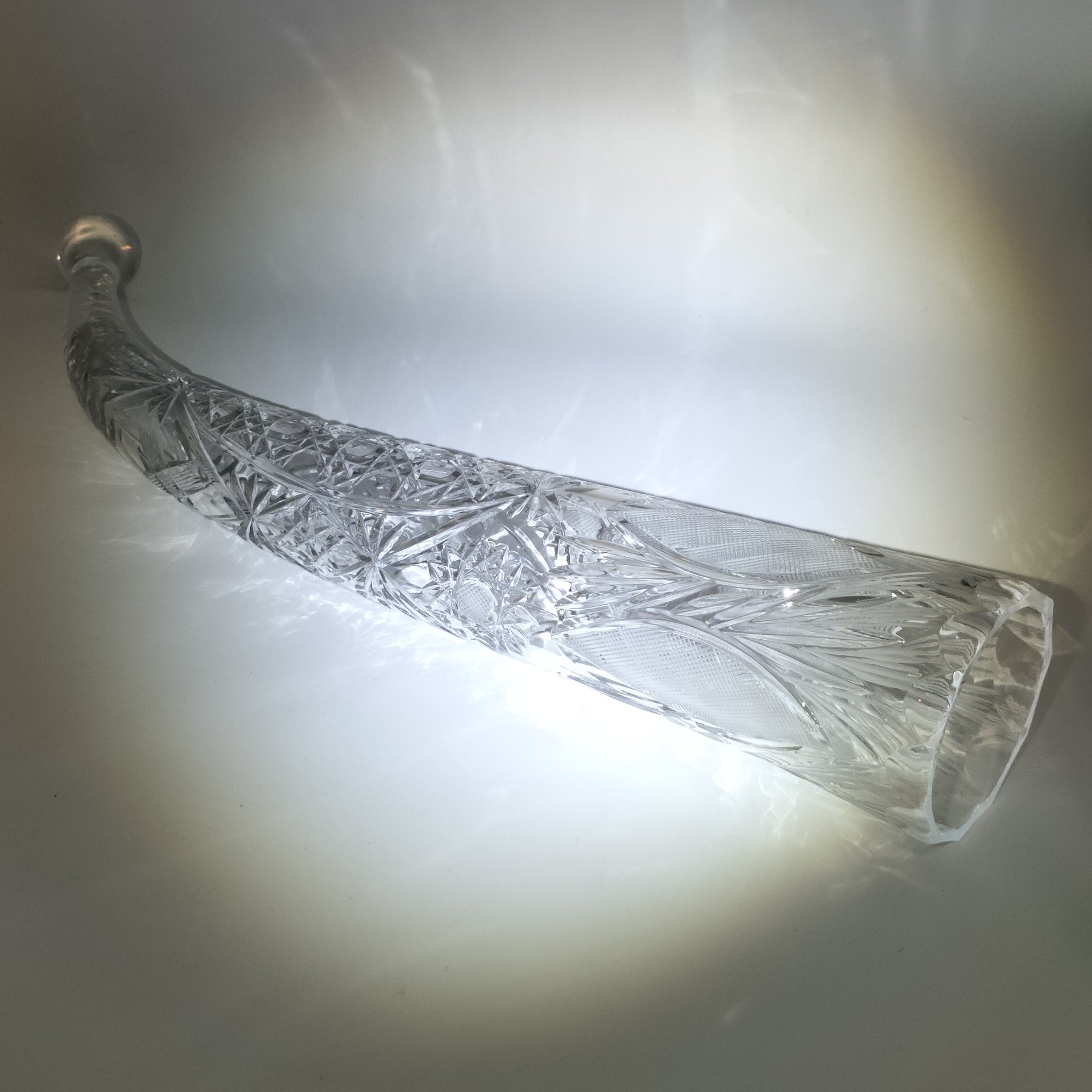 Крупный кубок для вина "Рог изобилия", украшенный резным геометрическим декором, хрусталь, алмазная грань, матирование, СССР, 1970-1990 гг.