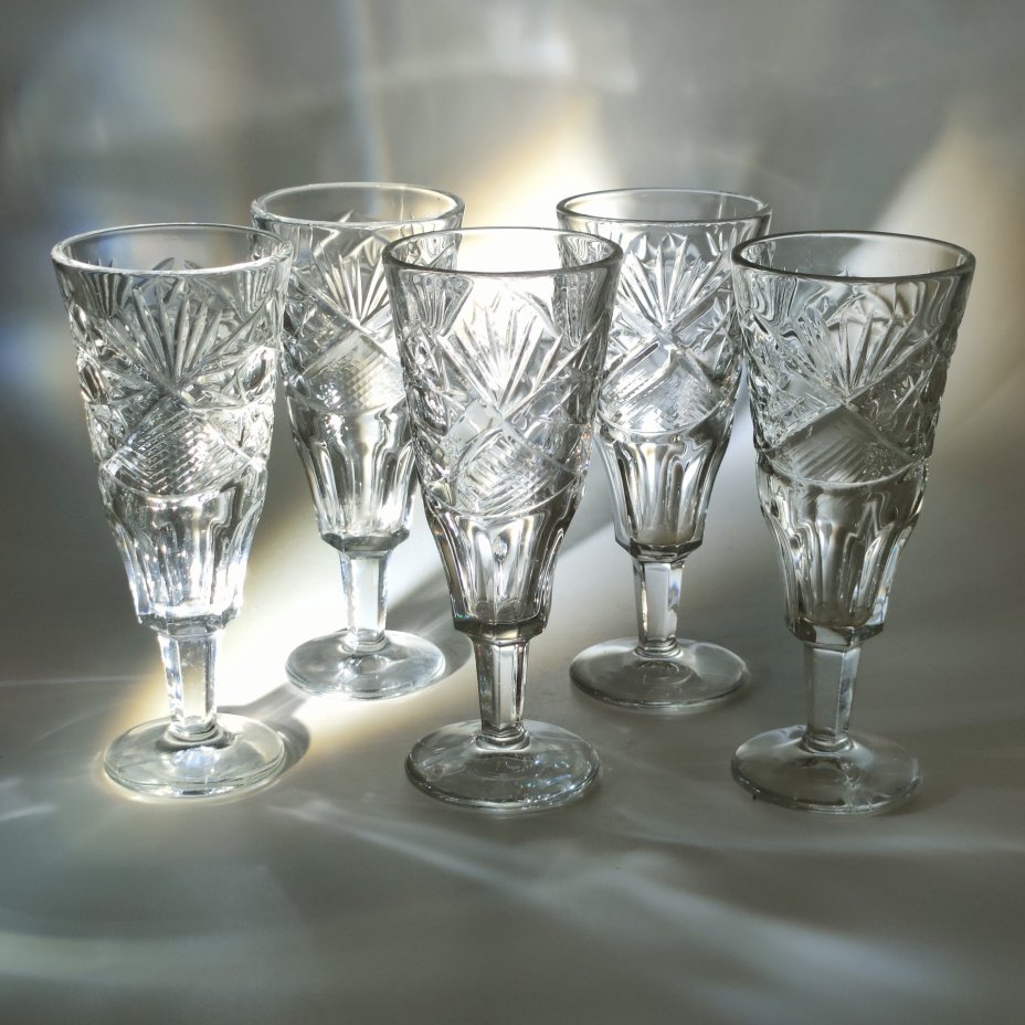 Набор из 5-ти лафитников с резным декором, хрусталь, алмазная грань, СССР, 1970-1990 гг.