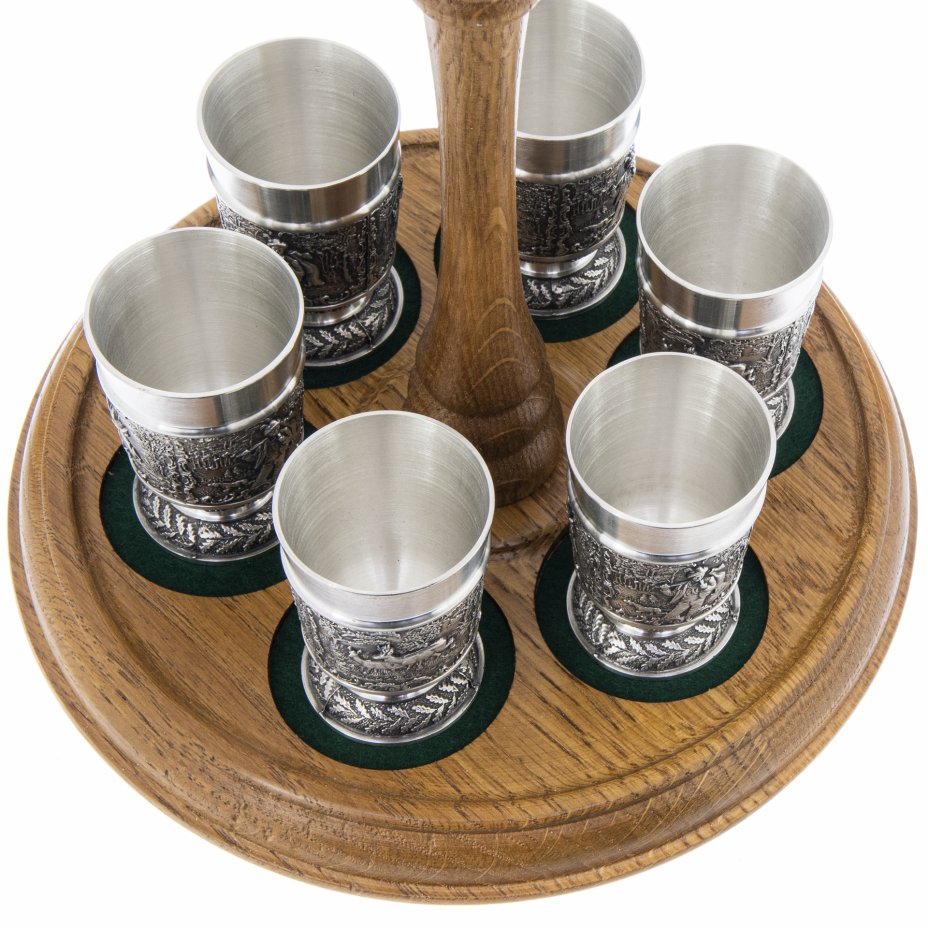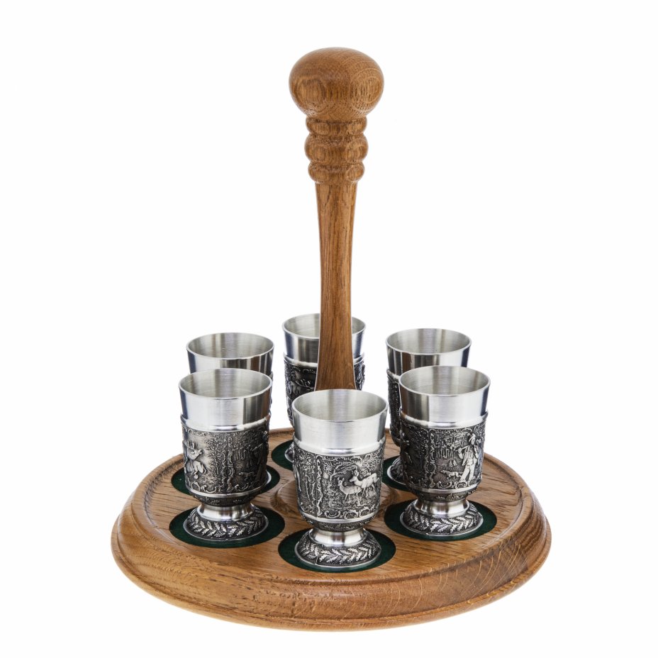 Набор стопок "Охота" на подставке, изготовленный фирмой "Artina SKS" в Германии в 2000–2010 годах.