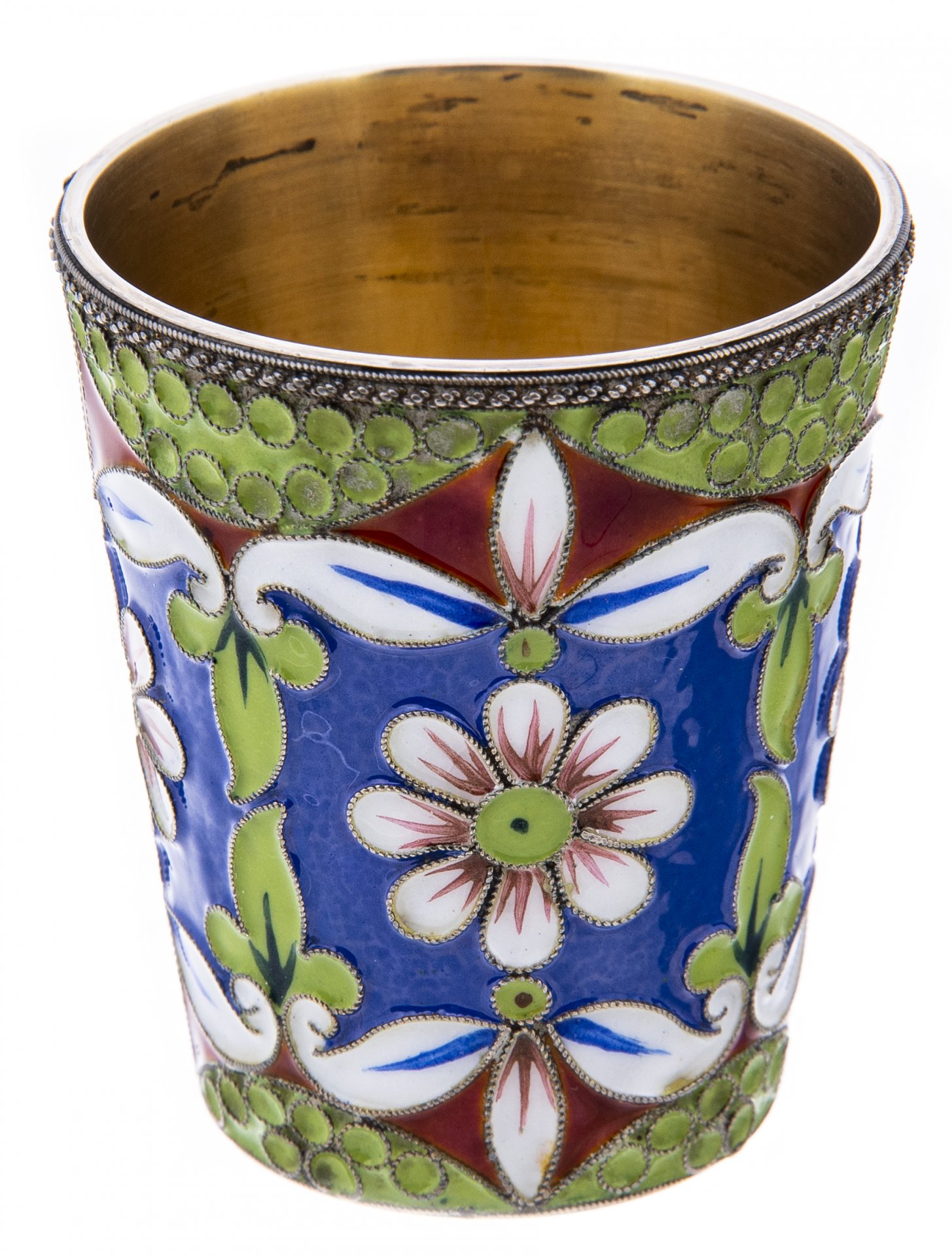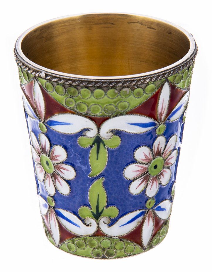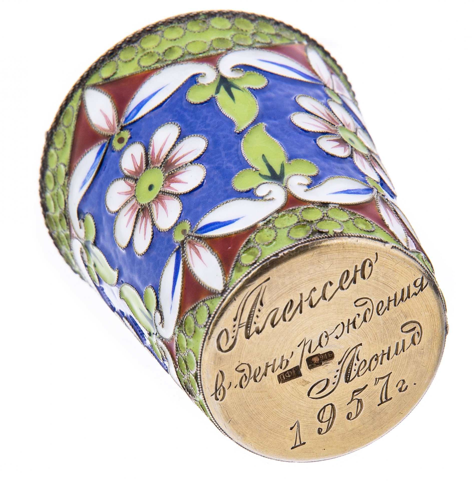 Стопка с эмалевым изображением цветов, серебро 916 пр., эмали, Ленинградская ювелирная фабрика, СССР, 1956 г.