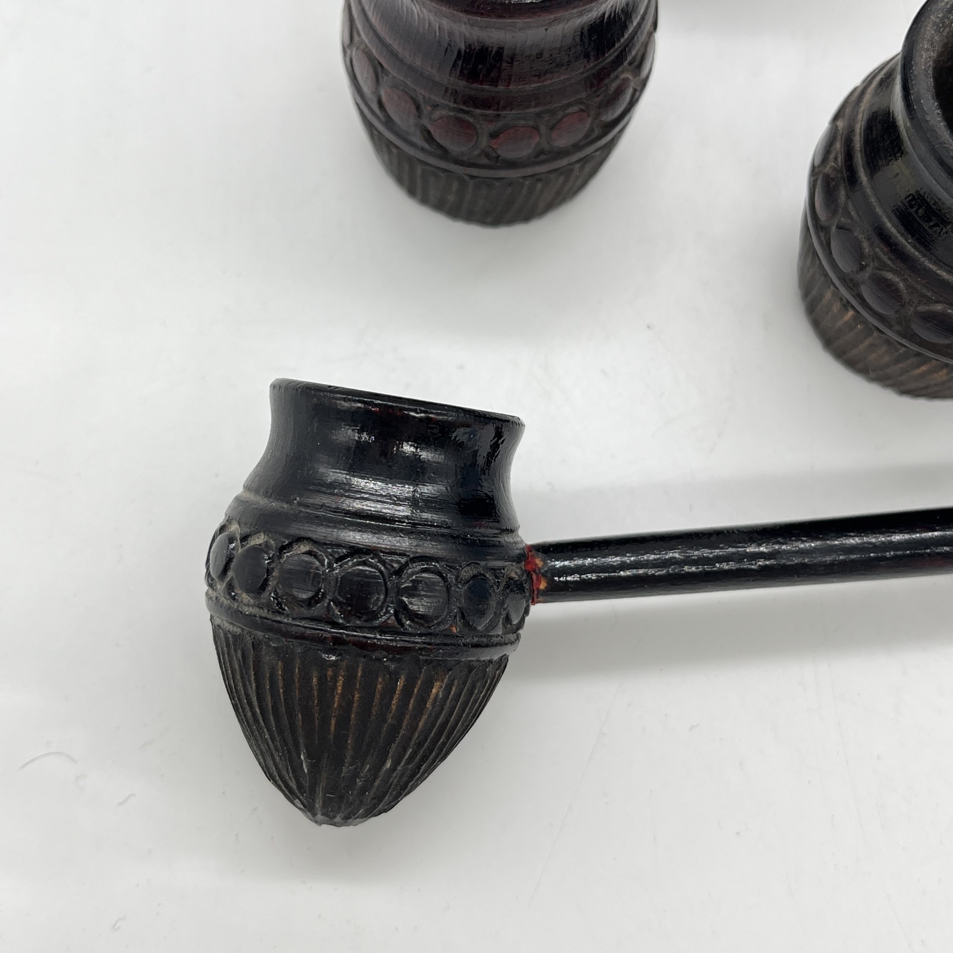 Набор из 6 стопок и ковшика с резным декором, дерево, резьба, СССР, 1970-1980 гг.