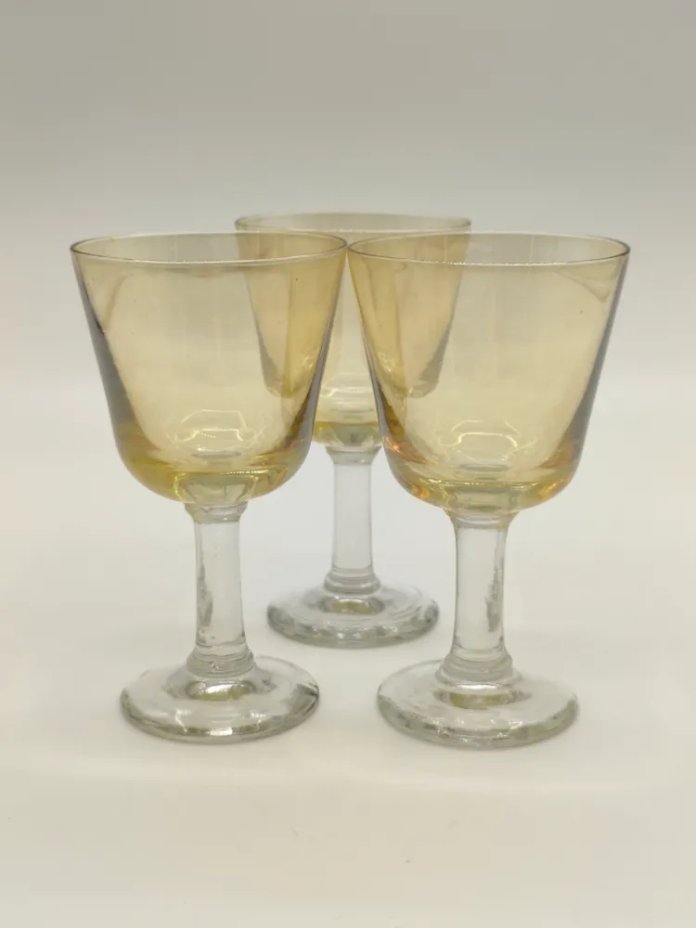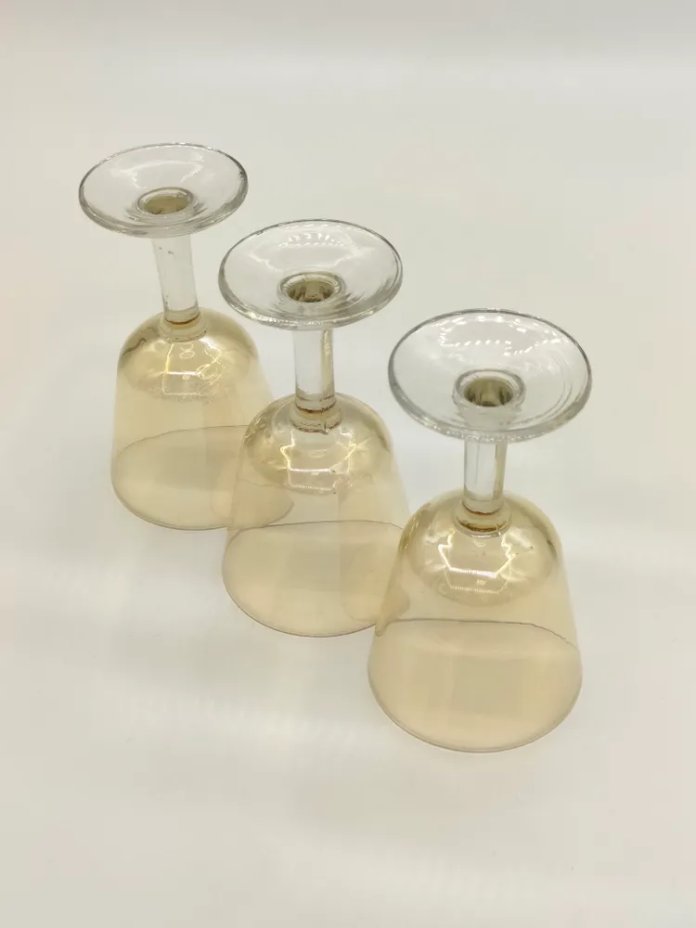 Набор из 3-х рюмок на ножке желтого оттенка, стекло, СССР, 1970-1990 гг.