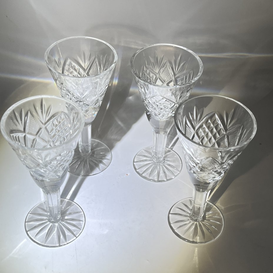 Набор из 4 рюмок на ножке, стекло, алмазная грань, СССР, 1960-1980 гг.