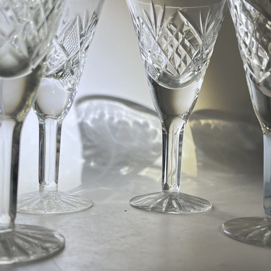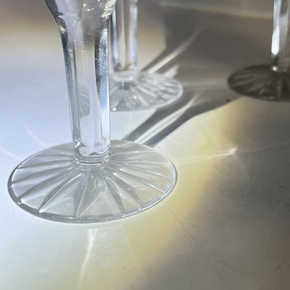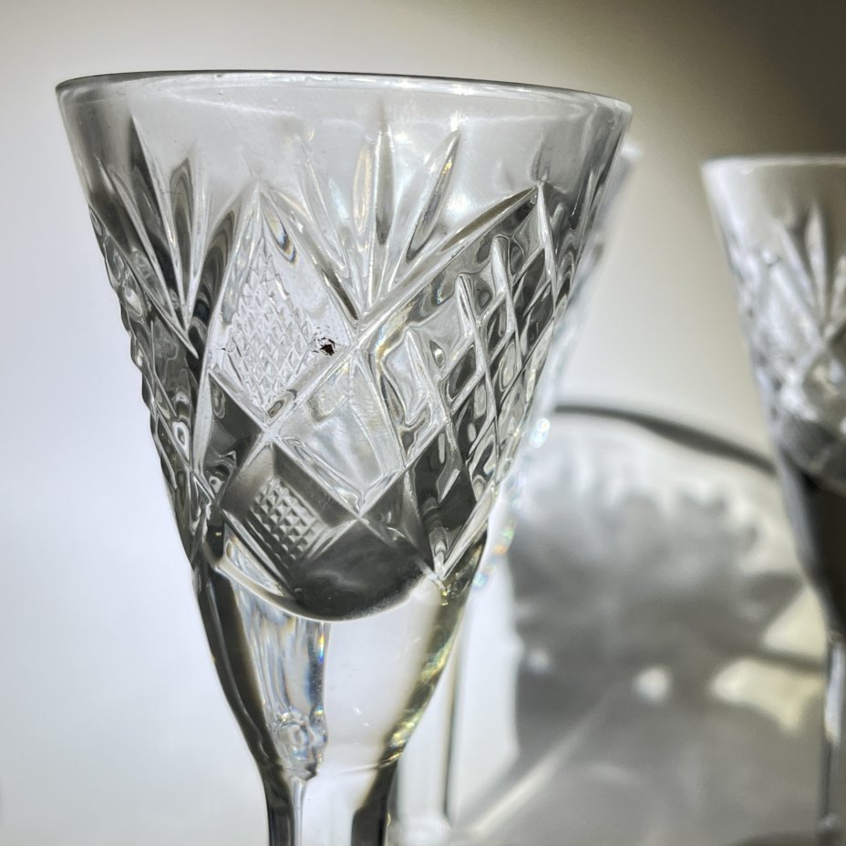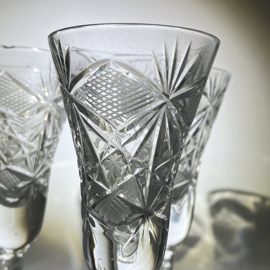 Рюмки на ножках с геометрическим декором 4 шт., хрусталь, пресс, СССР, 1970-1990 гг.