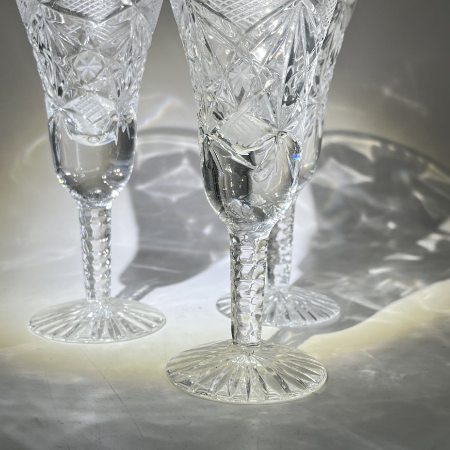Набор из 3 рюмок на ножке, резьба, хрусталь, СССР, 1970-1990 гг.