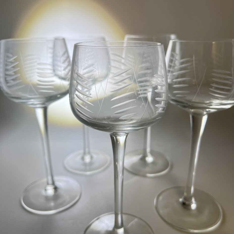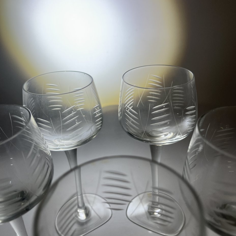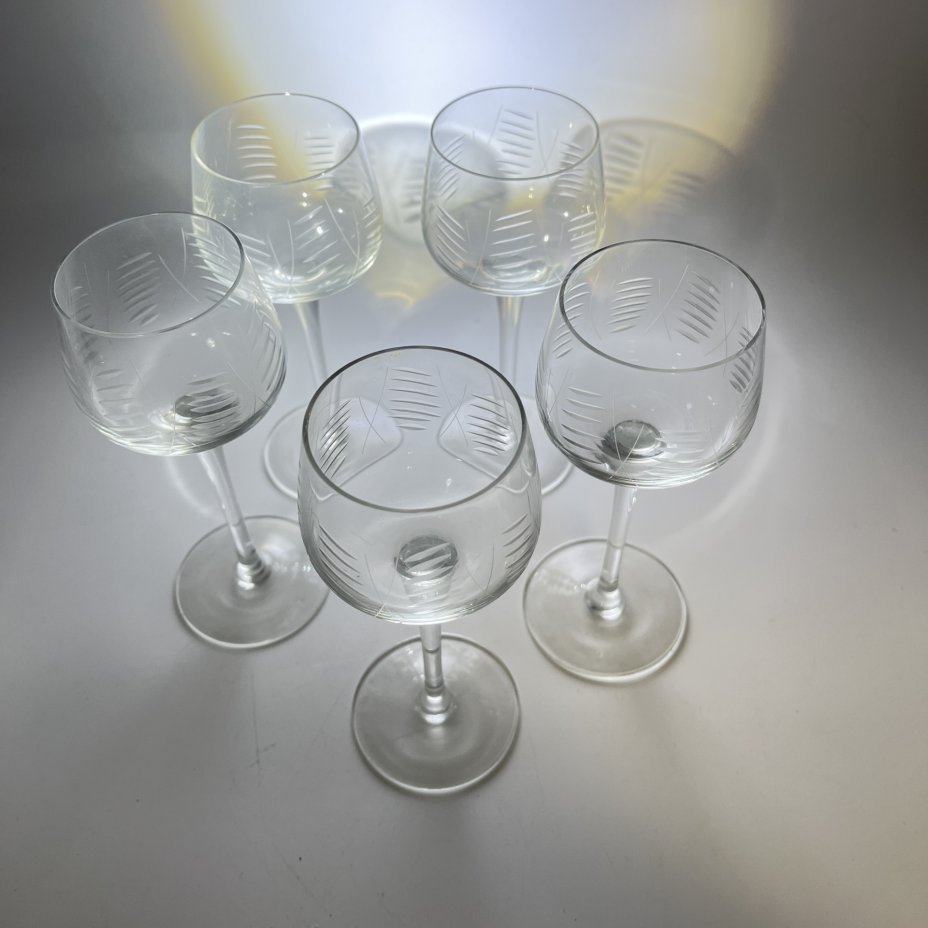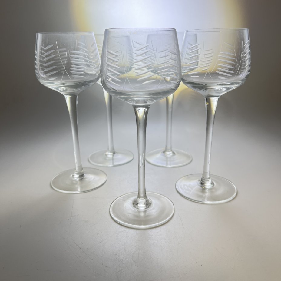 Набор из 5 рюмок на длинной ножке с резным растительным декором, стекло, алмазная грань, СССР, 1970-1990 гг.