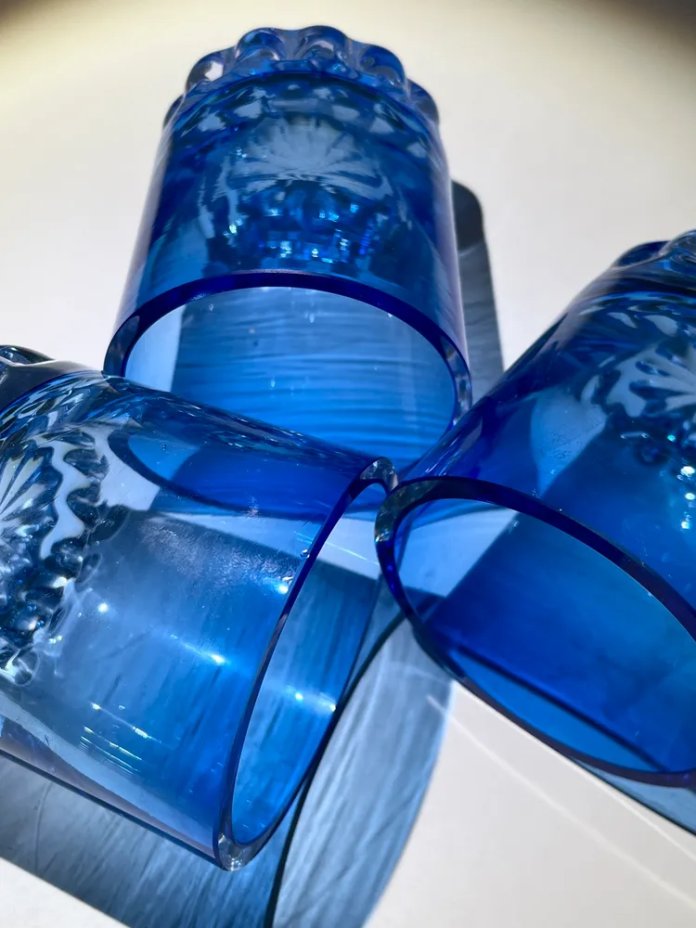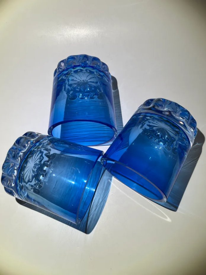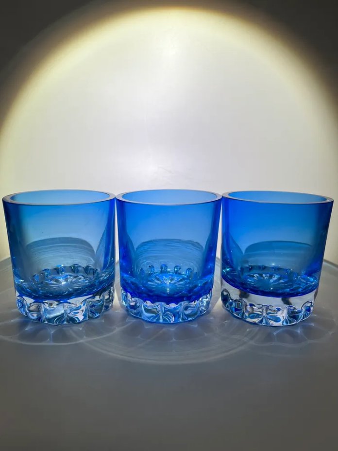 Диаметр одного стакана в мм - 78, высота - 90. Общий вес - 1304 г.