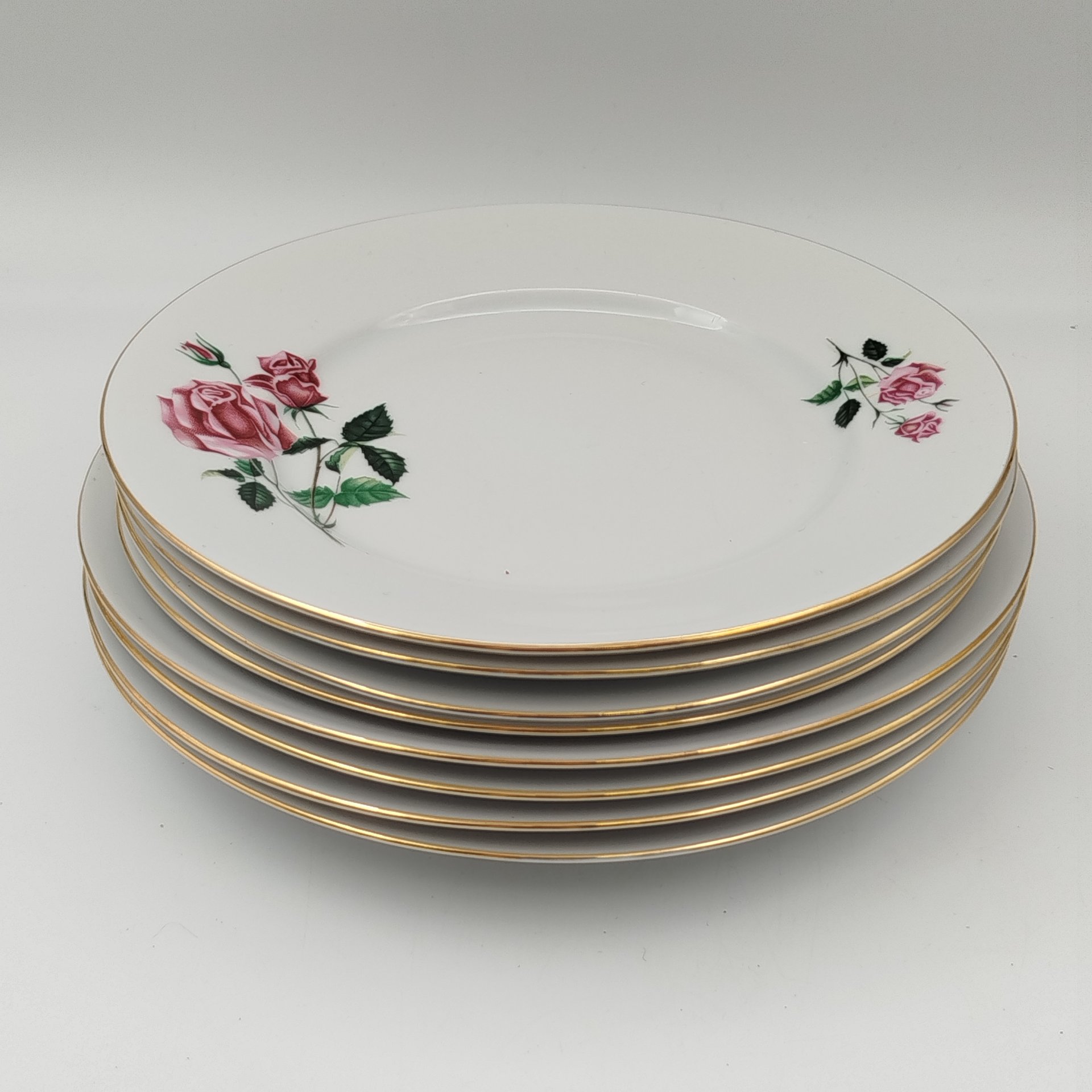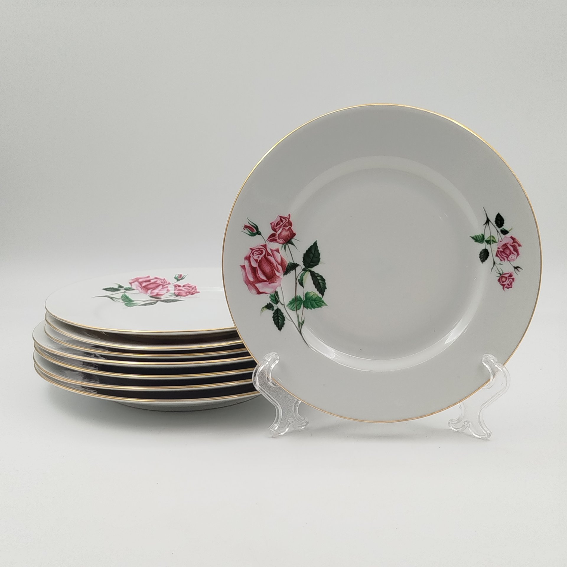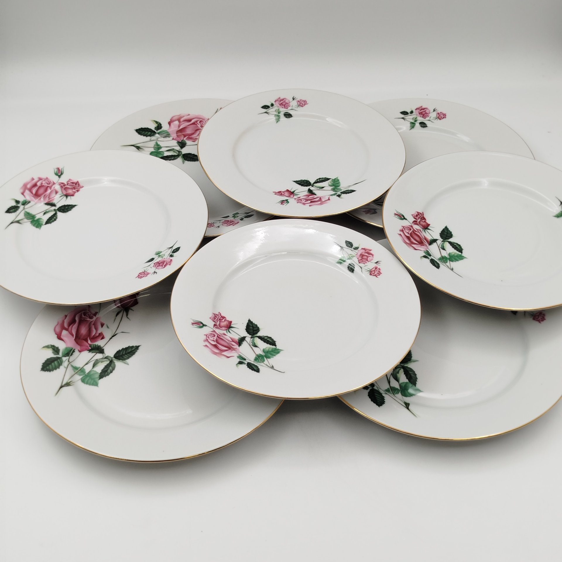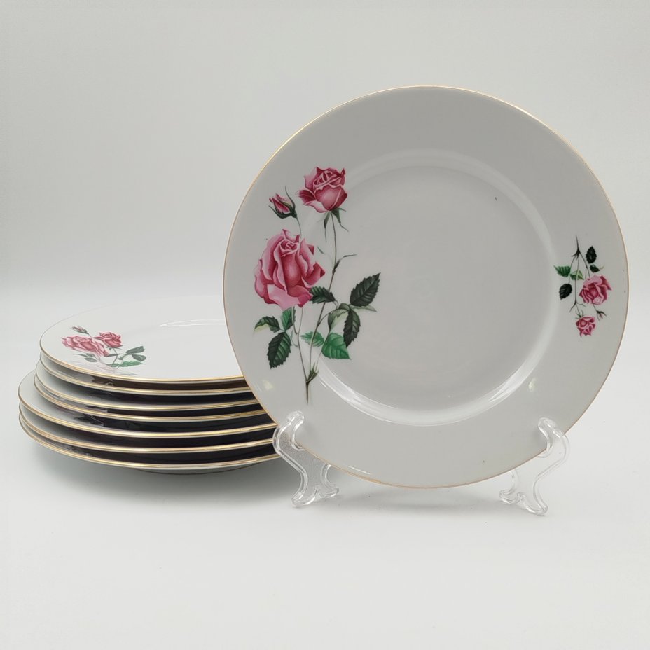 Набор из 8-ми пирожковых тарелок, украшенных декором в виде роз, фаянс, деколь, Boch Freres Keramis, Бельгия, 1931 г.