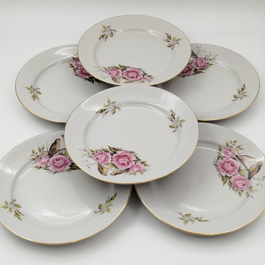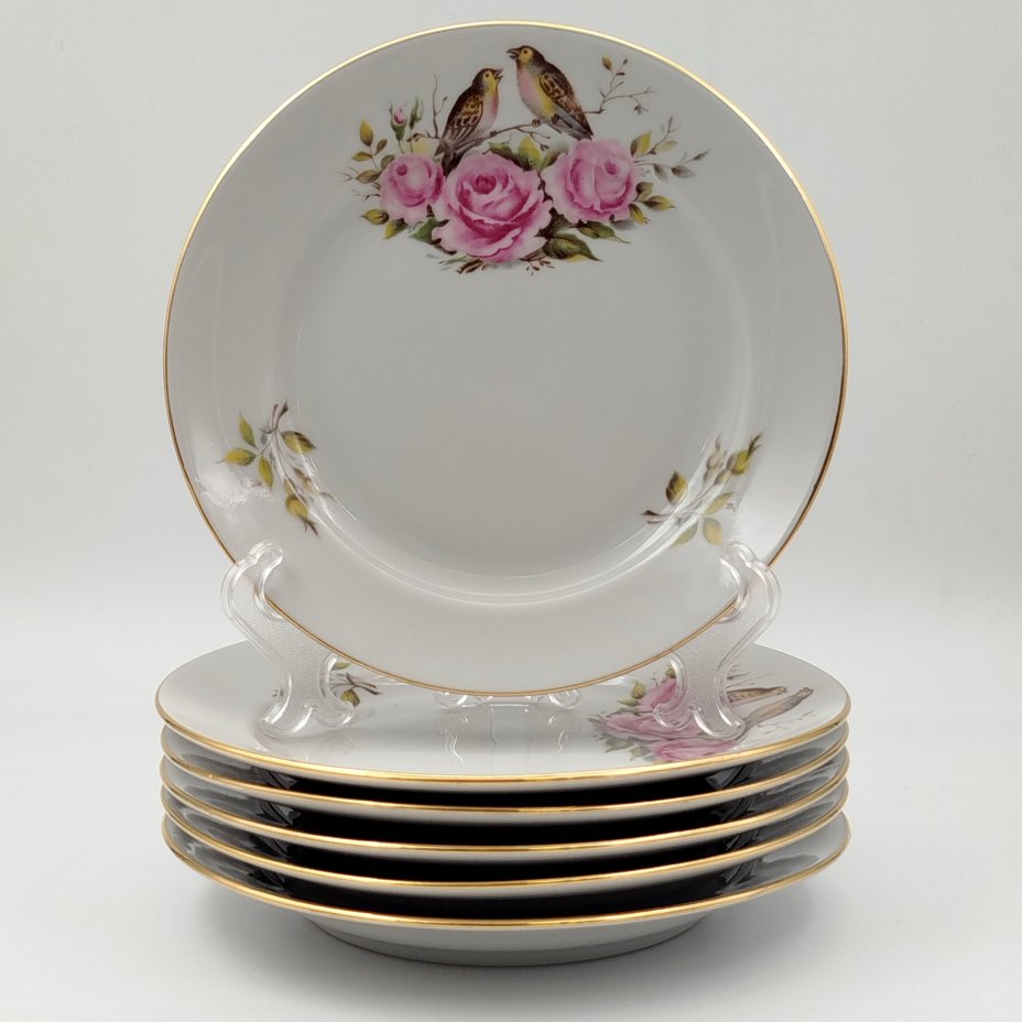Набор десертных тарелок из сервиза "Роза", фарфор, деколь, золочение, Freiberg Porzellan, Германия, 1957-1972 гг.