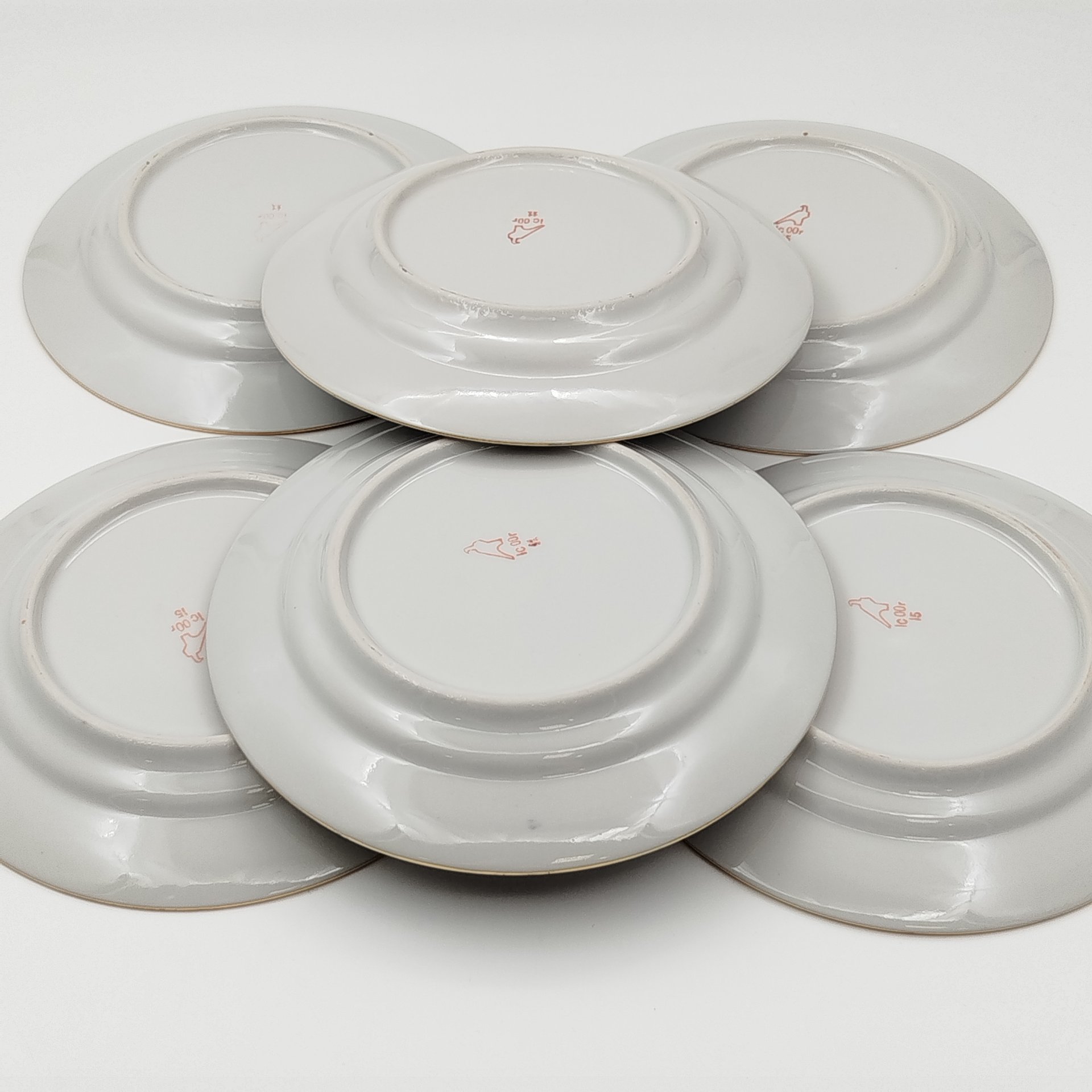 Набор из 6-ти десертных тарелок, украшенных цветочным орнаментом, фарфор, крытье, золочение, Ленинградский фарфоровый завод (ЛФЗ), Россия, 1960-1969 гг.