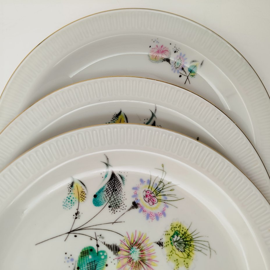 Купить Набор из 5-ти десертных тарелок с растительным декором, фарфор, золочение, Барановский фарфоровый завод, СССР, 1970-1991 гг.