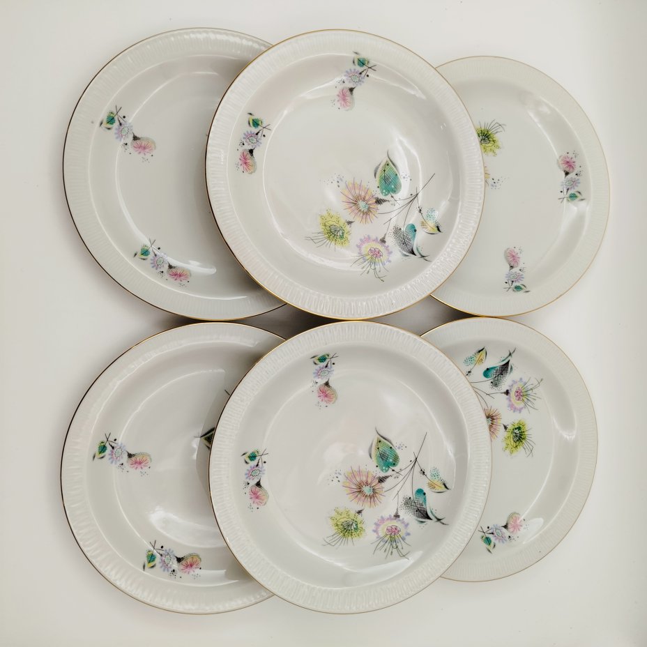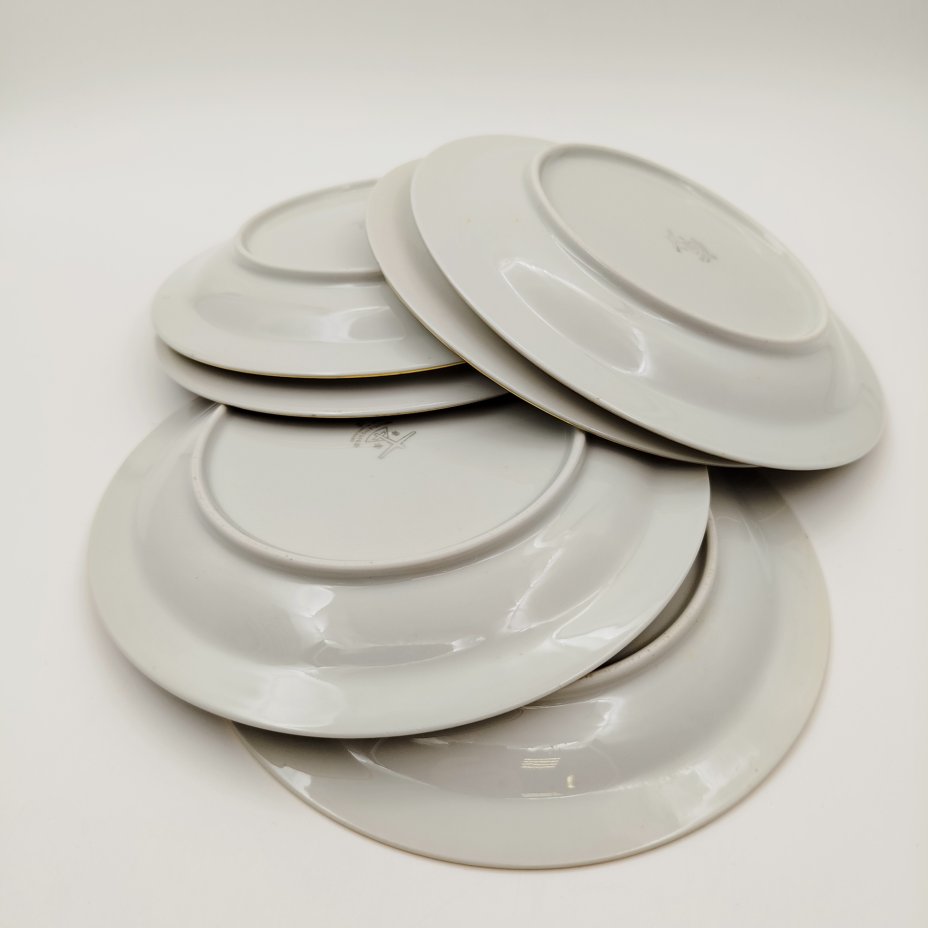Набор десертных тарелок "Кафе" на 6 персон, фарфор, золочение, Дулевский фарфоровый завод (Дулёво), СССР, 1968-1991 гг.