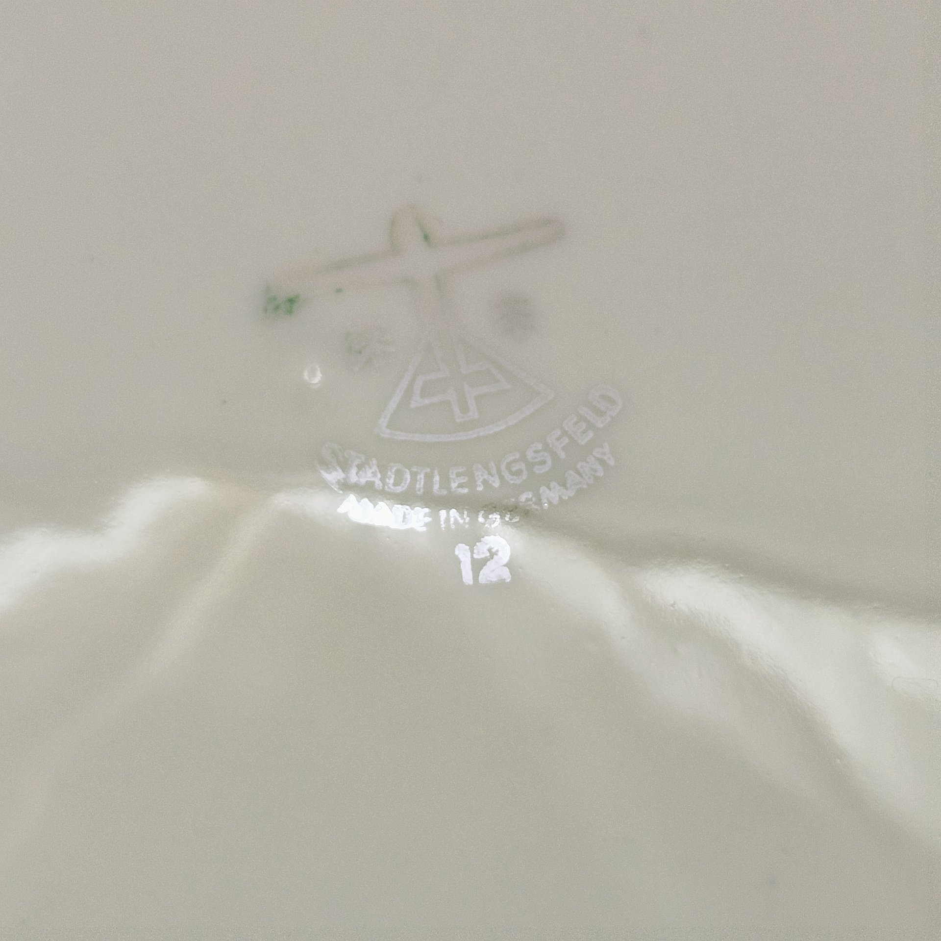Набор из шести десертных тарелок в стиле шинуазри с декором в виде пагоды, фарфор, деколь, золочение, Könitz Porzellan, ГДР, 1954-1962 гг.
