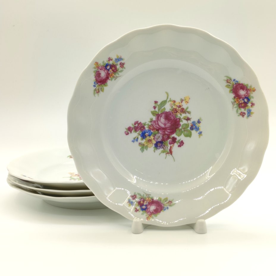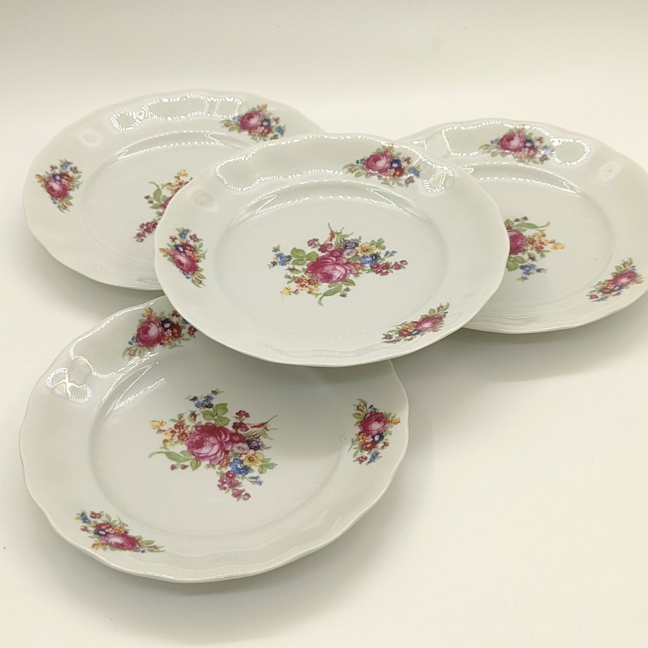 Набор из 6-ти десертных тарелок, украшенных цветочным декором, фарфор, деколь, Фабрика князя Друцкого-Любецкого в Цмелеве, Российская империя, 1888-1917 гг.